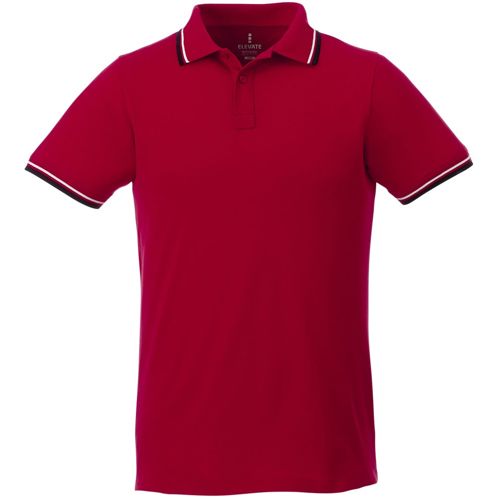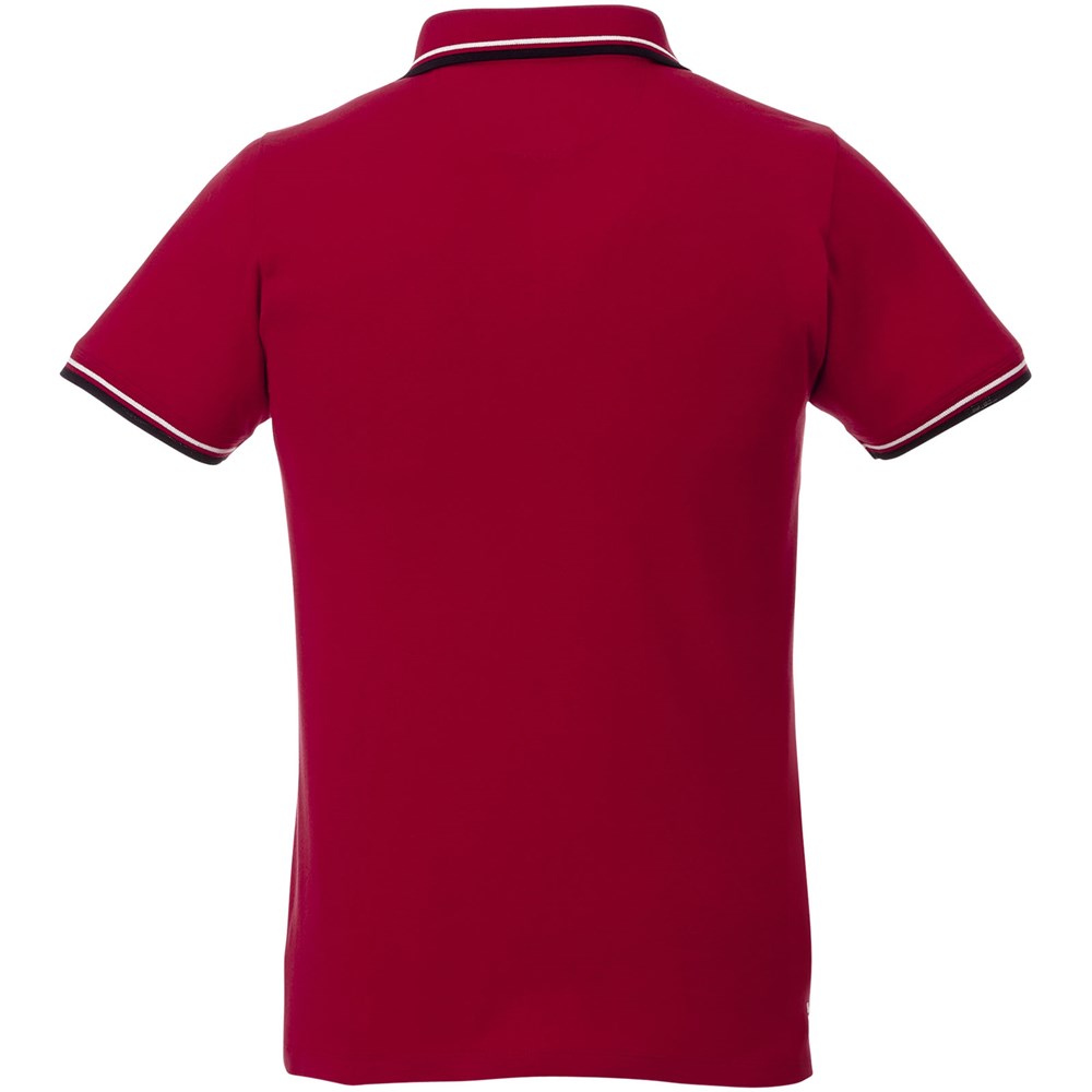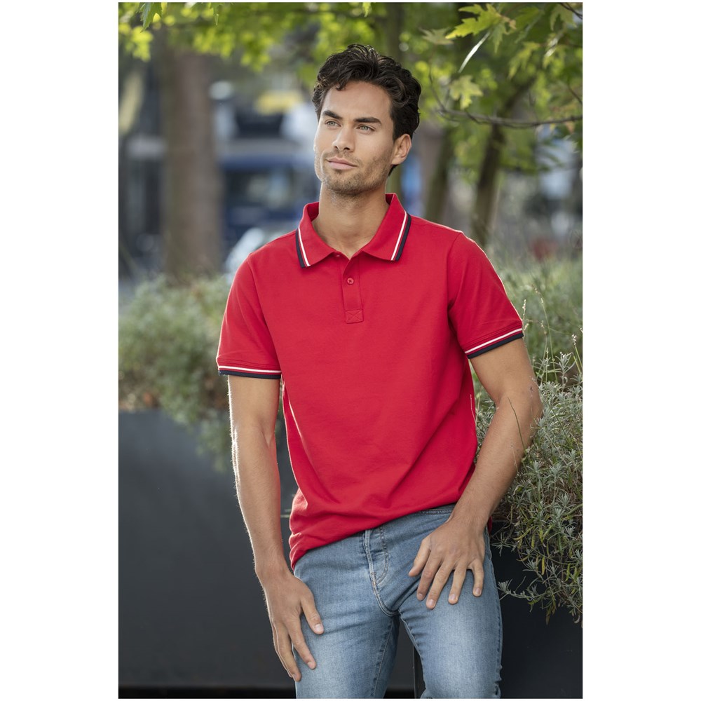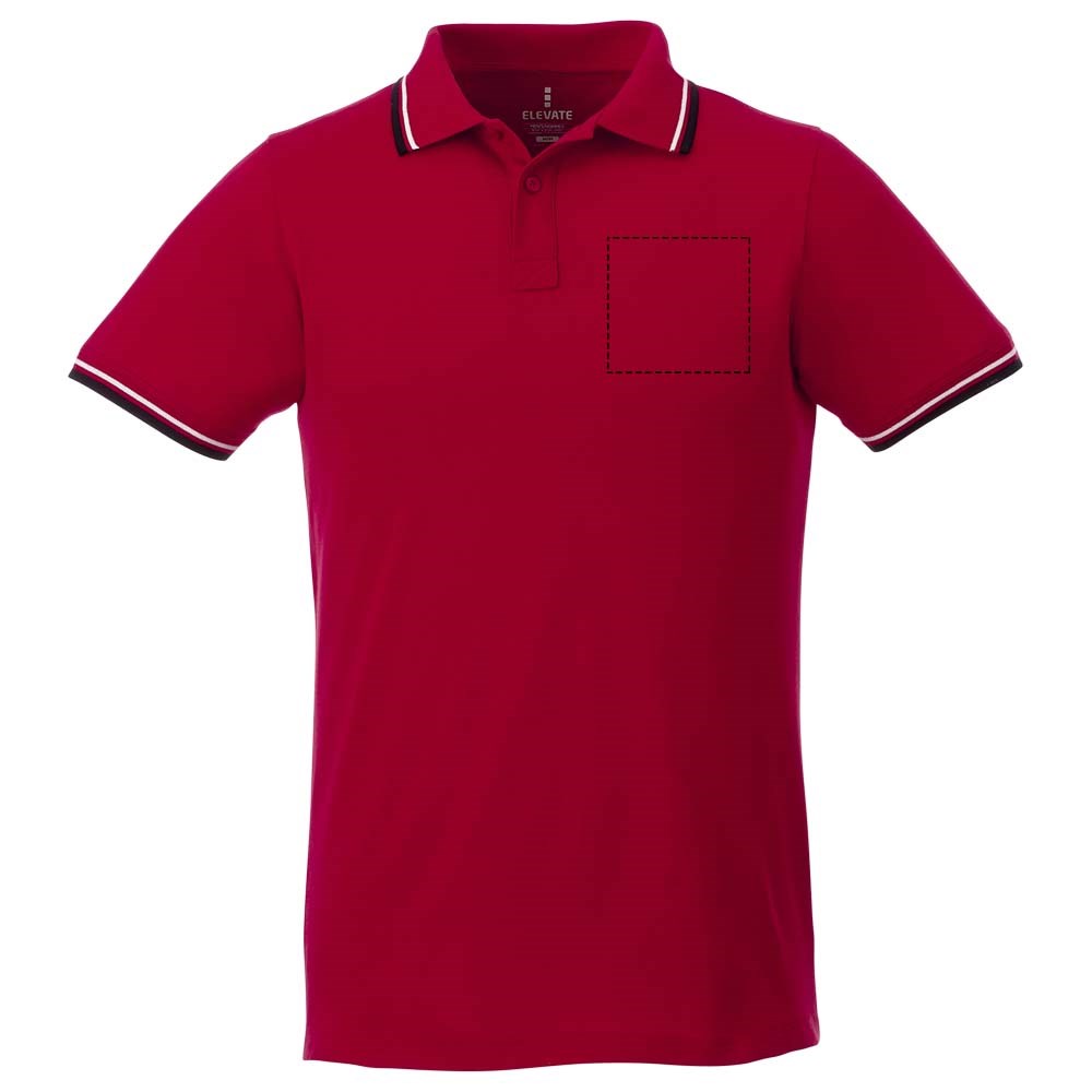 Vlakgebreide kraag. Plat gebreide rib mouw. Contrast gekleurde tipping op de kraag en mouwen. knopenlijst met twee knopen. Gegraveerde knopen. Transfer maatlabel voor extra comfort.