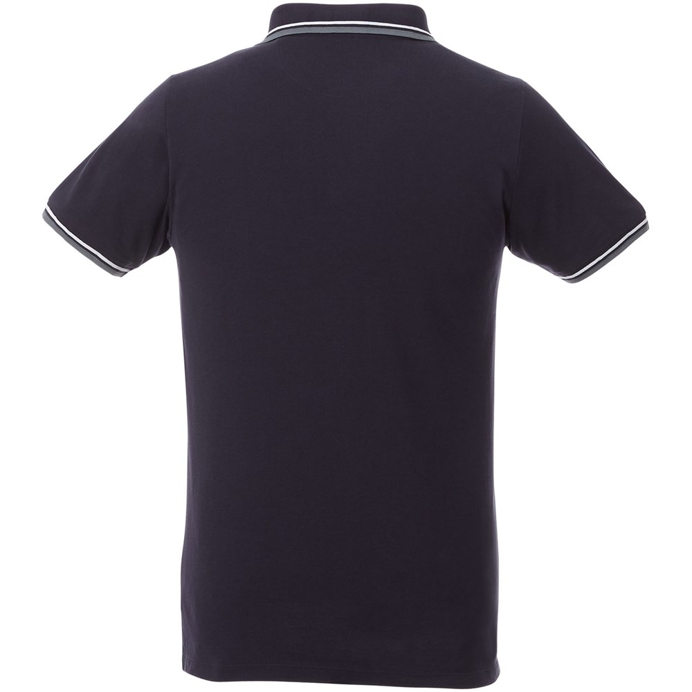 Vlakgebreide kraag. Plat gebreide rib mouw. Contrast gekleurde tipping op de kraag en mouwen. knopenlijst met twee knopen. Gegraveerde knopen. Transfer maatlabel voor extra comfort.