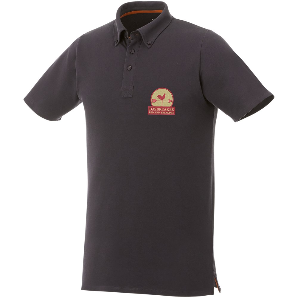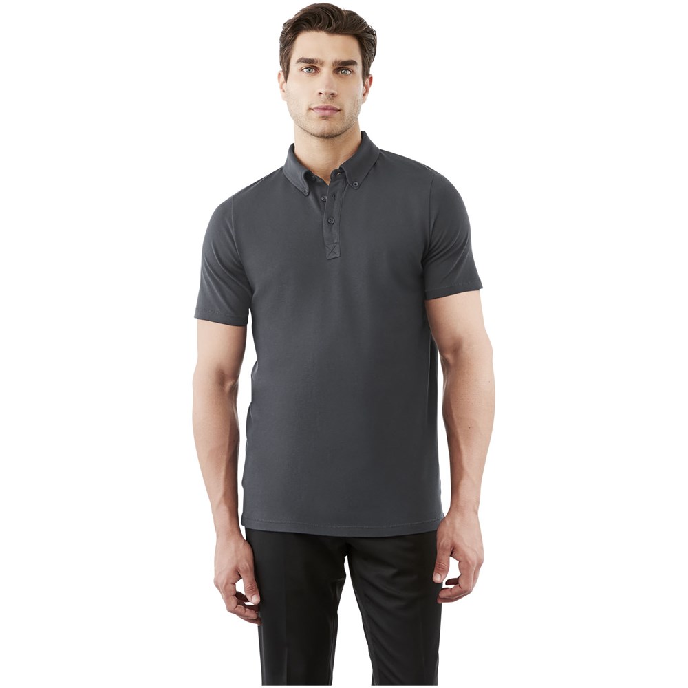 Boord in dezelfde stof. Stretch stof. Knopenlijst met drie knopen. Button-down kraag. Zijsplit. Nektape in contrasterende kleur. Halve maan. Gegraveerde knopen. Transfer maatlabel voor extra comfort.