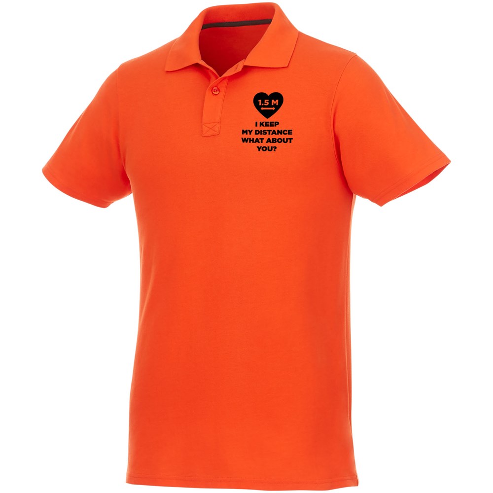 Gepersonaliseerde decoratie opties. Uitneembaar label voor draagcomfort. Vlakgebreide kraag. knopenlijst met twee knopen. Dubbele stiksels. Gestanste knoop. Nektape in contrasterende kleur.