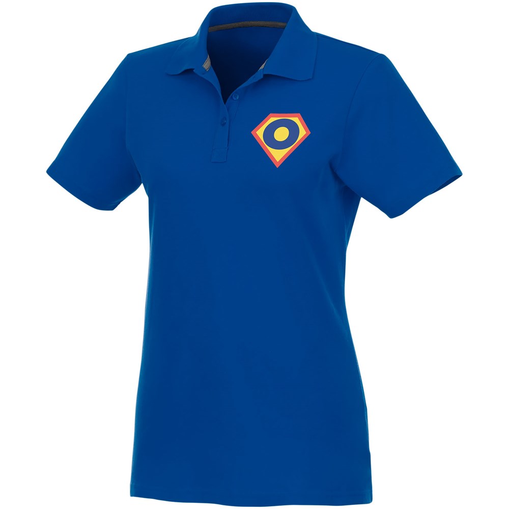 Gepersonaliseerde decoratie opties. Uitneembaar label voor draagcomfort. Vlakgebreide kraag. Knopenlijst met drie knopen. Dubbele stiksels. Gestanste knoop. Nektape in contrasterende kleur.