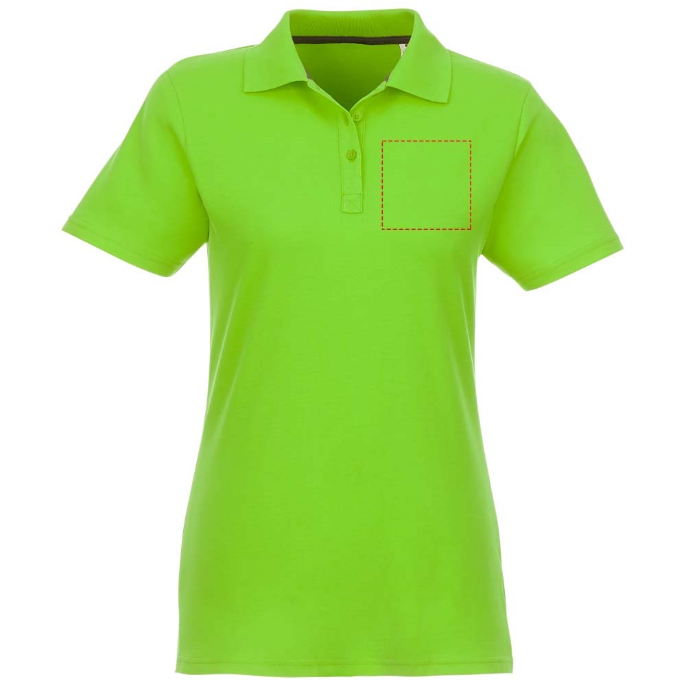 Gepersonaliseerde decoratie opties. Uitneembaar label voor draagcomfort. Vlakgebreide kraag. Knopenlijst met drie knopen. Dubbele stiksels. Gestanste knoop. Nektape in contrasterende kleur.