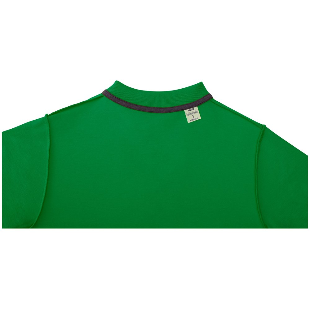 Gepersonaliseerde decoratie opties. Uitneembaar label voor draagcomfort. Vlakgebreide kraag. Knopenlijst met drie knopen. Dubbele stiksels. Gestanste knoop. Nektape in contrasterende kleur.