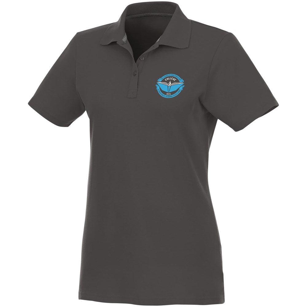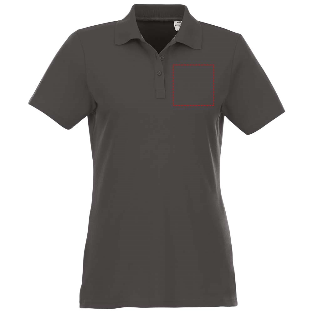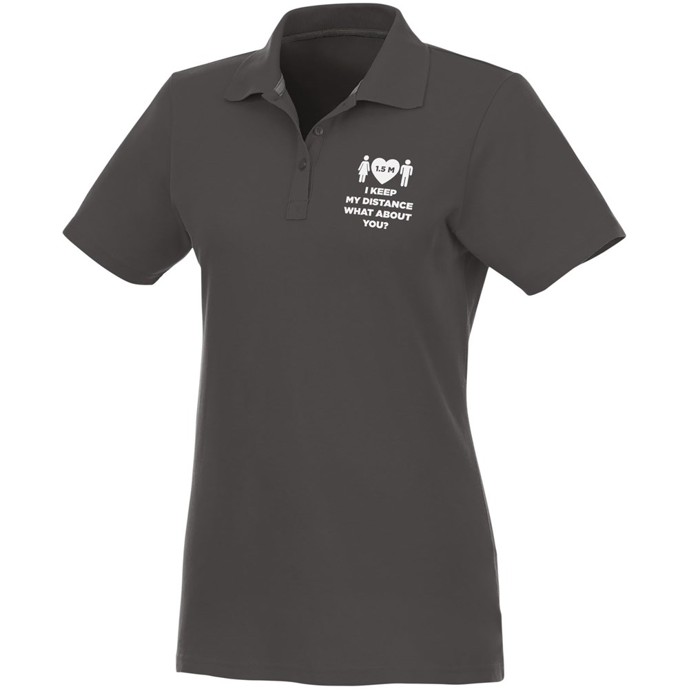 Gepersonaliseerde decoratie opties. Uitneembaar label voor draagcomfort. Vlakgebreide kraag. Knopenlijst met drie knopen. Dubbele stiksels. Gestanste knoop. Nektape in contrasterende kleur.