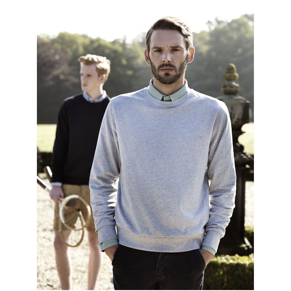 Ronde hals. Vlakgebreide kraag. Plat gebreide rib mouw. Ribgebreide onderzijde. Halve maan. Twee kleuren nektape. Label in zijnaad. Transfer maatlabel voor extra comfort.