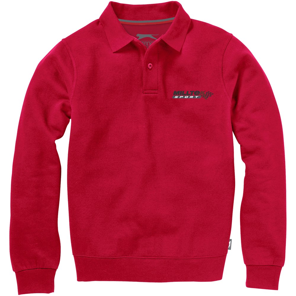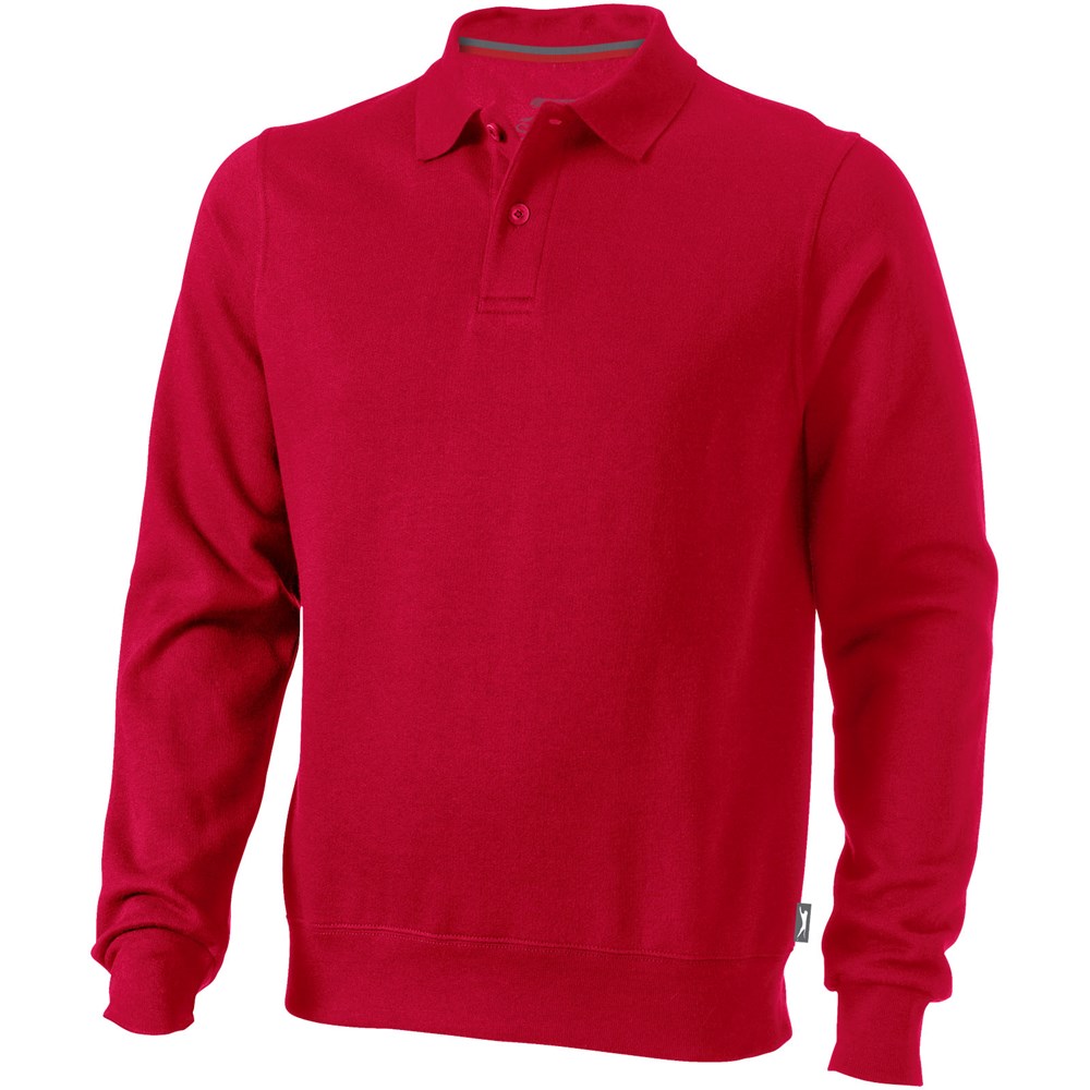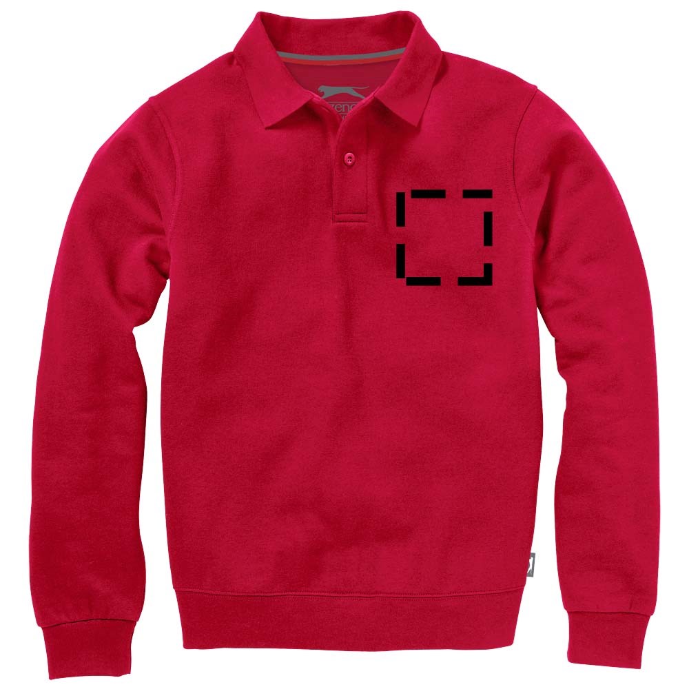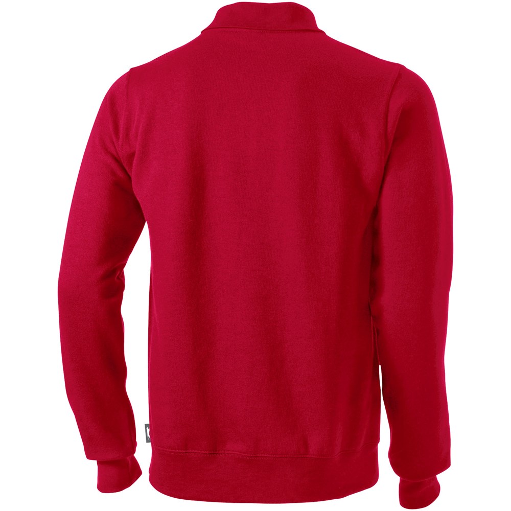 knopenlijst met twee knopen. Vlakgebreide kraag. Plat gebreide rib mouw. Ribgebreide onderzijde. Halve maan. Twee kleuren nektape. Gegraveerde knopen. Label in zijnaad. Transfer maatlabel voor extra comfort.