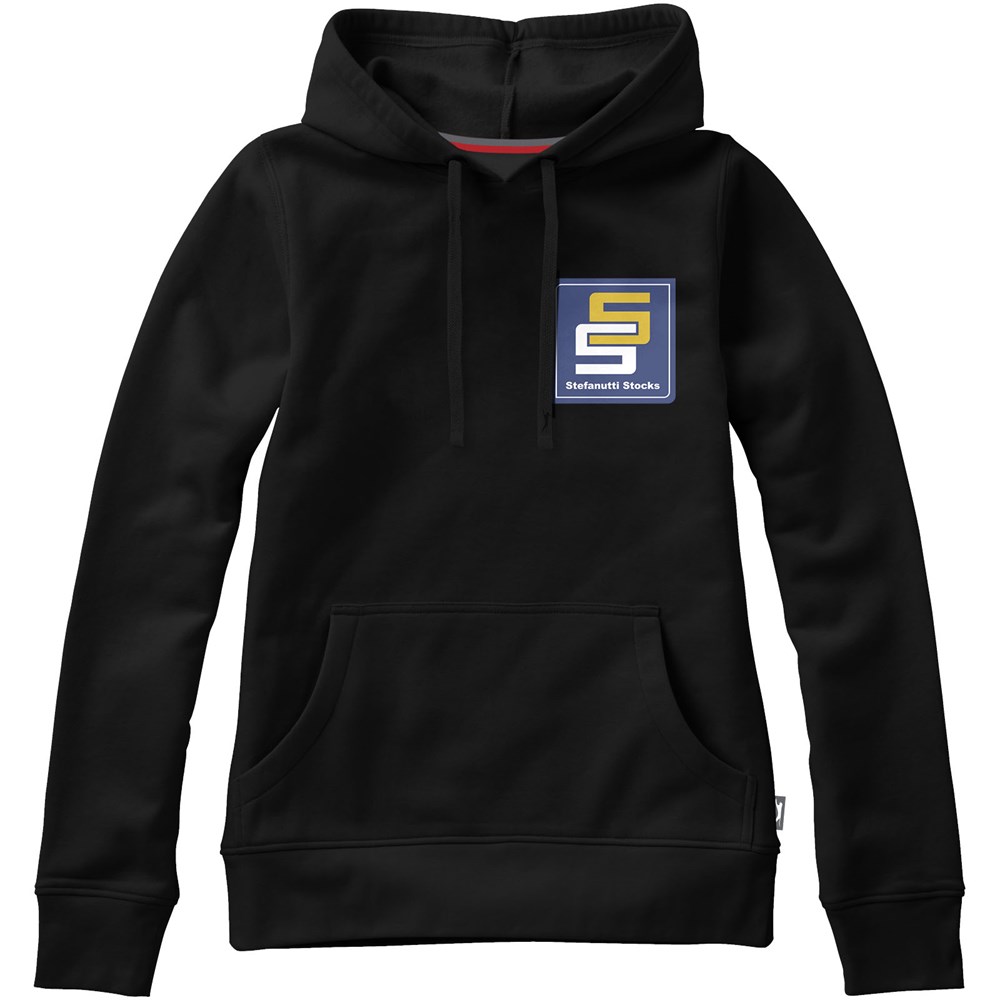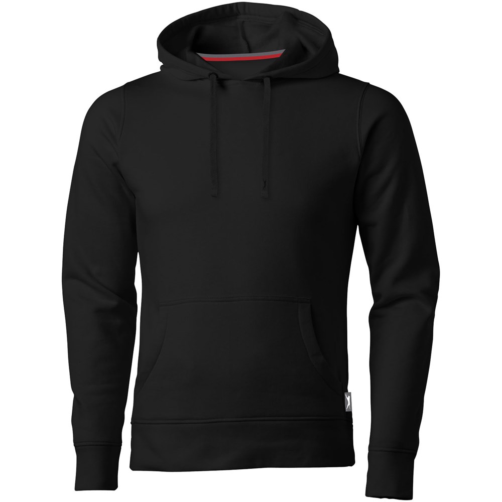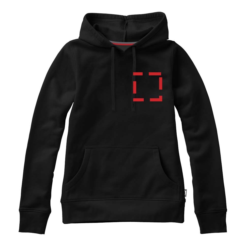 Plat gebreide rib mouw. Ribgebreide onderzijde. Trekkoord in capuchon. Kangoeroezak. Halve maan. Twee kleuren nektape. Gegraveerde zilveren oogjes. Label in zijnaad. Transfer maatlabel voor extra comfort.
