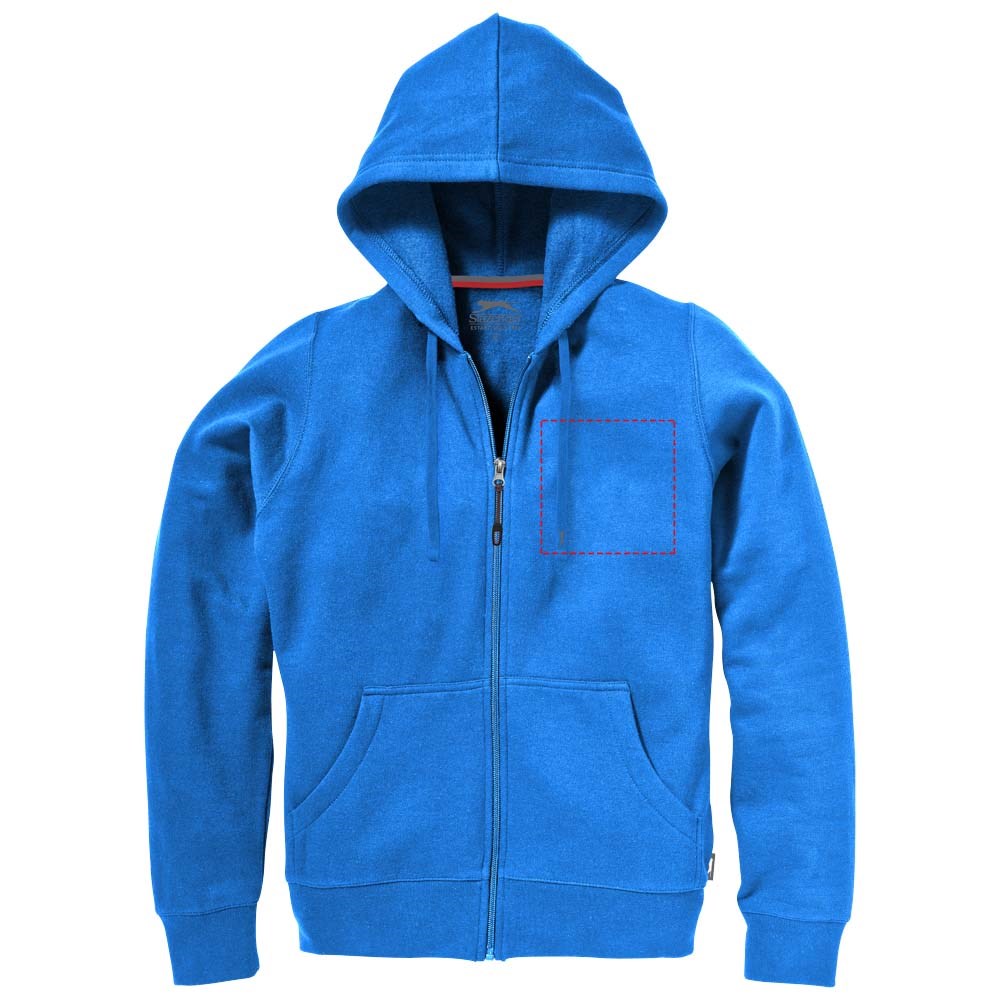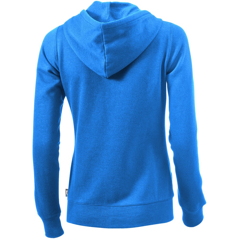 Plat gebreide rib mouw. Ribgebreide onderzijde. Kangoeroezak. Trekkoord in capuchon. Toelopende taille voor een meer flatterende pasvorm. 'Easy grip' ritstrekker. Halve maan. Twee kleuren nektape. Gegraveerde zilveren oogjes. Label in zijnaad.
