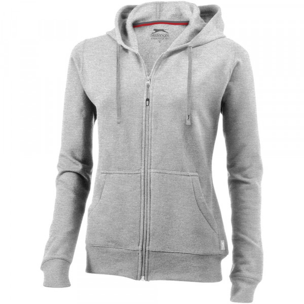 Plat gebreide rib mouw. Ribgebreide onderzijde. Kangoeroezak. Trekkoord in capuchon. Toelopende taille voor een meer flatterende pasvorm. 'Easy grip' ritstrekker. Halve maan. Twee kleuren nektape. Gegraveerde zilveren oogjes. Label in zijnaad.