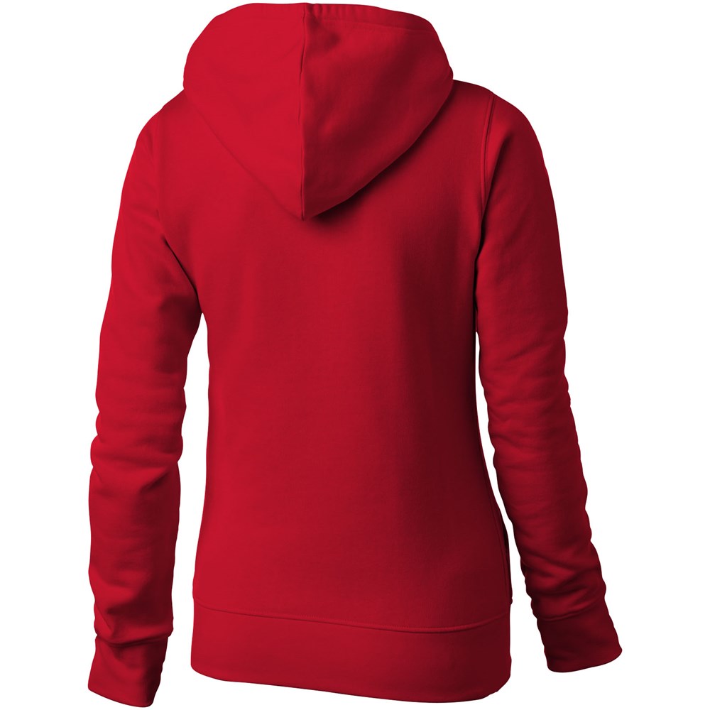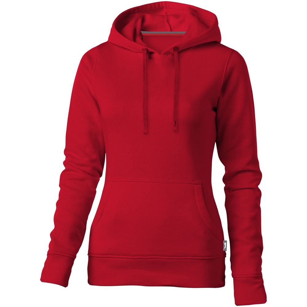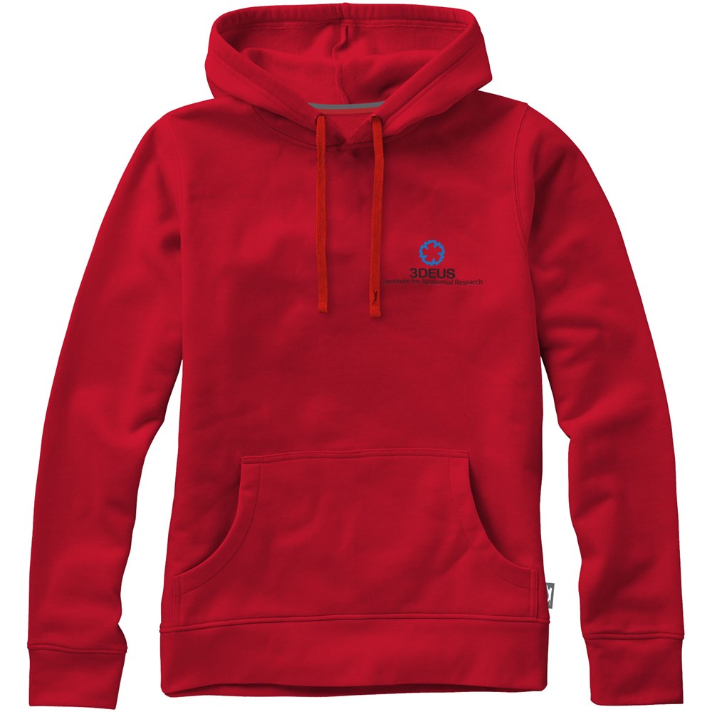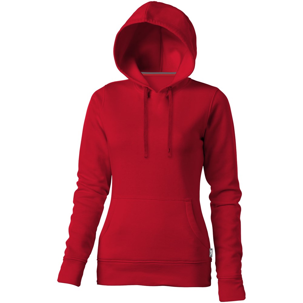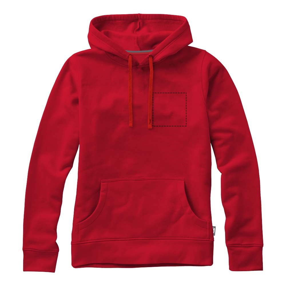 Plat gebreide rib mouw. Ribgebreide onderzijde. Trekkoord in capuchon. Kangoeroezak. Toelopende taille voor een meer flatterende pasvorm. Halve maan. Twee kleuren nektape. Gegraveerde zilveren oogjes. Label in zijnaad. Transfer maatlabel voor extra comfort.