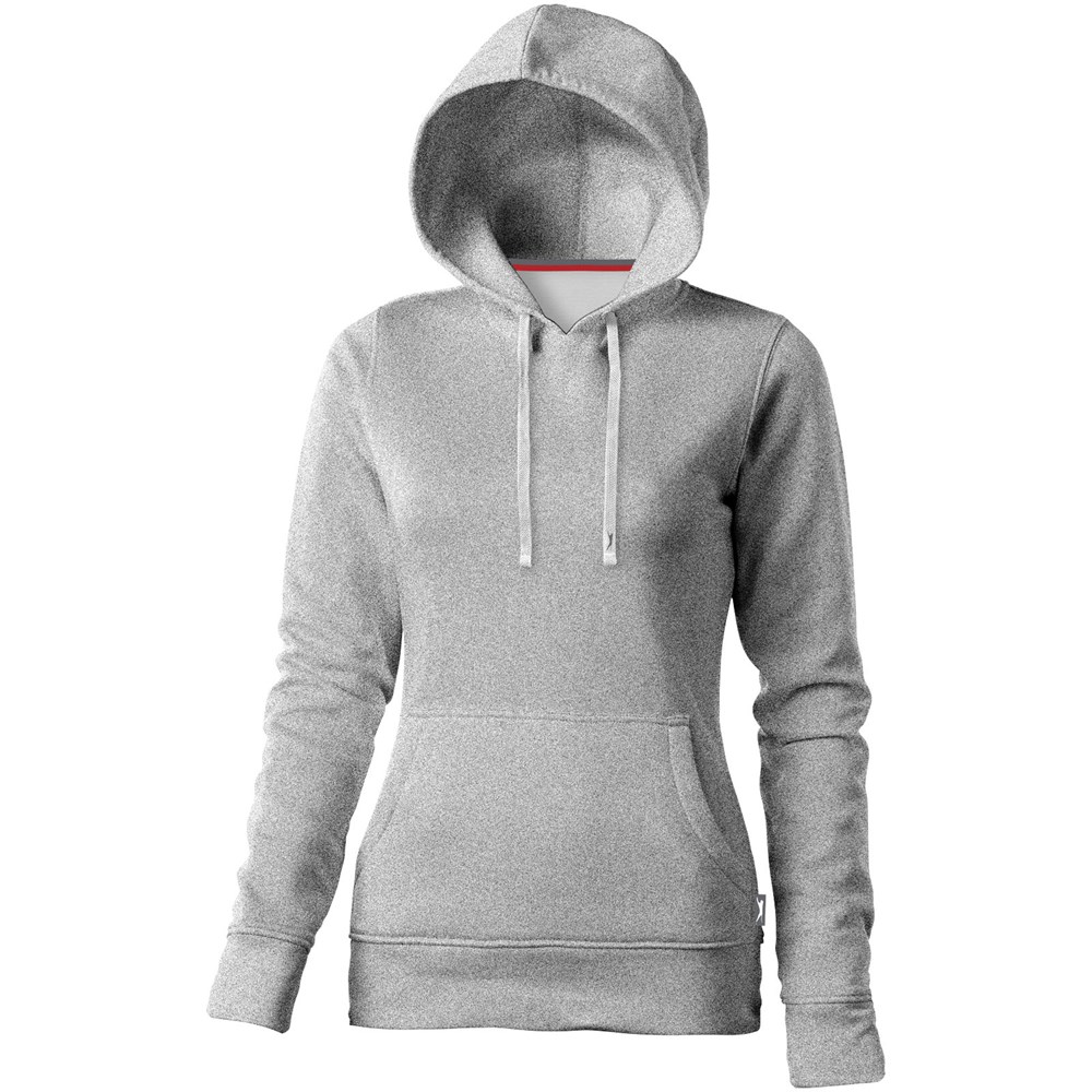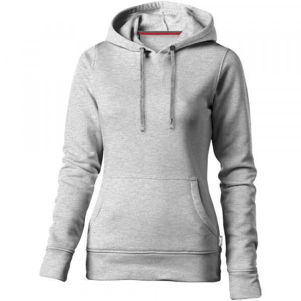 Plat gebreide rib mouw. Ribgebreide onderzijde. Trekkoord in capuchon. Kangoeroezak. Toelopende taille voor een meer flatterende pasvorm. Halve maan. Twee kleuren nektape. Gegraveerde zilveren oogjes. Label in zijnaad. Transfer maatlabel voor extra comfort.