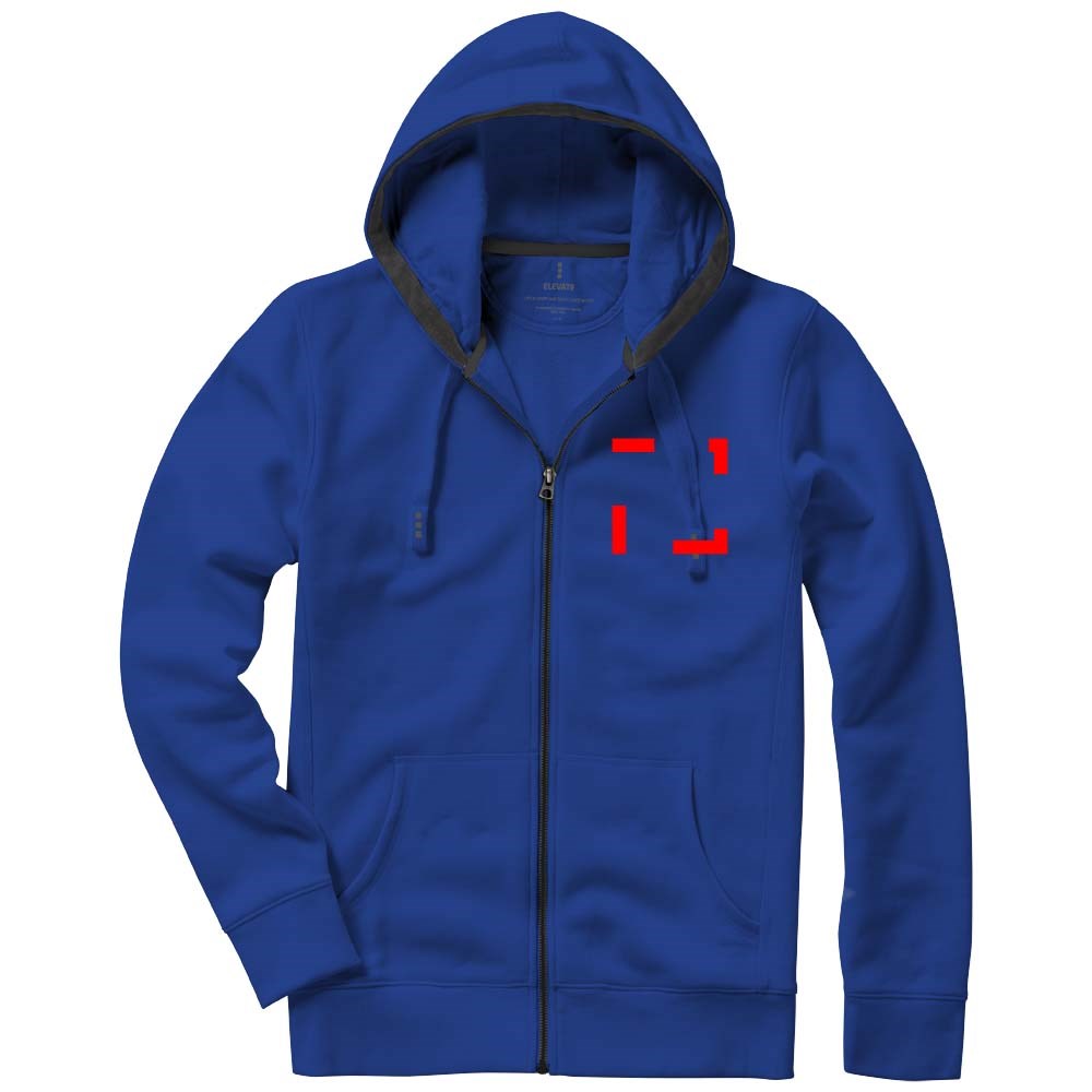 Ribgebreide zijpanelen. Plat gebreide rib mouw. Ribgebreide onderzijde. Trekkoord in capuchon. Kangoeroezak. Halve maan. Single jersey voering aan binnenkant capuchon. Gegraveerde zilveren oogjes. Satijnen nektape. contrast gekleurde visgraat tape.