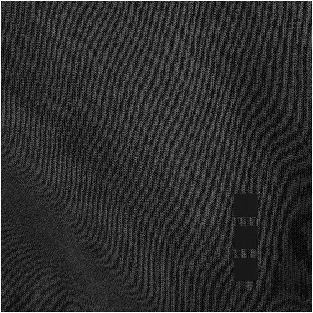 Ribgebreide zijpanelen. Vlakgebreide kraag. Ribgebreide onderzijde. Kangoeroezak. Single jersey voering aan binnenkant capuchon. Halve maan. Satijnen nektape. contrast gekleurde visgraat tape. Gegraveerde zilveren oogjes. Transfer maatlabel voor extra comfort.