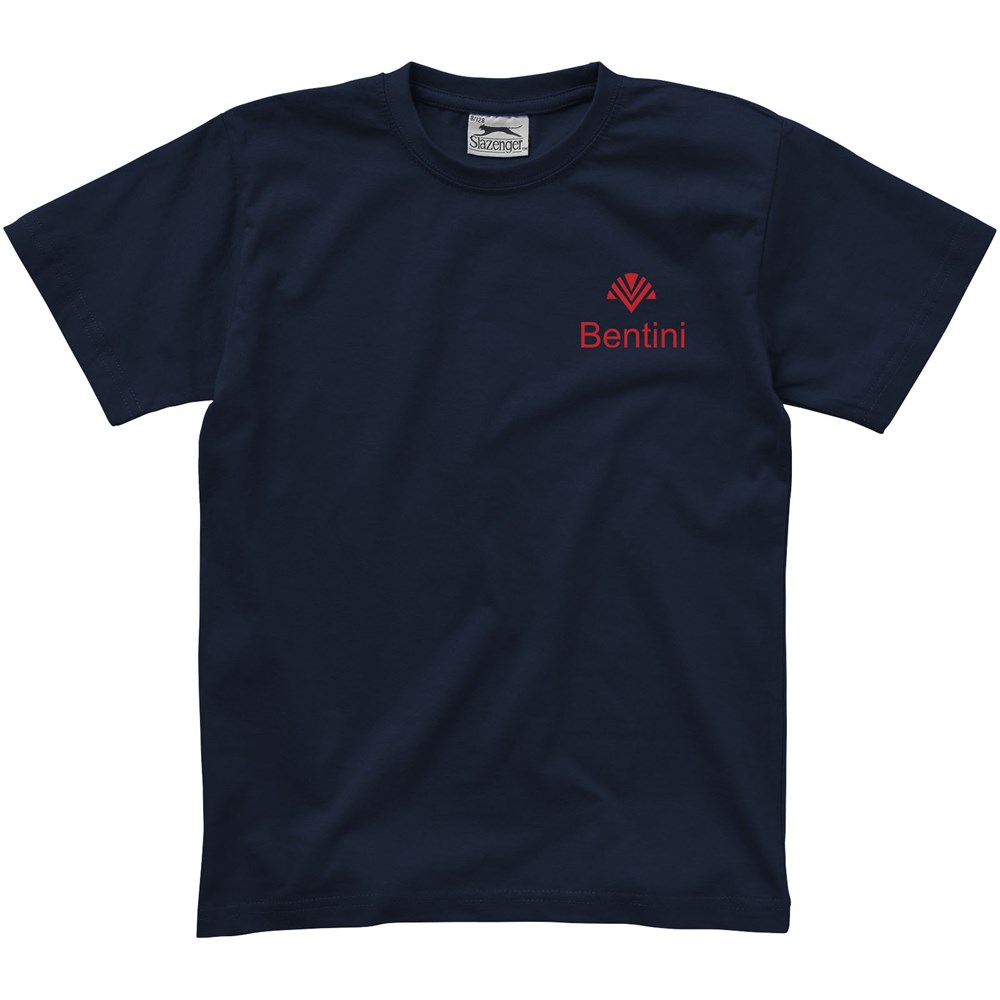 Vlakgebreide kraag. Ronde hals. Zijnaden. Schouder tot schouder tape. Dubbele stiksels. Transfer maatlabel voor extra comfort.
