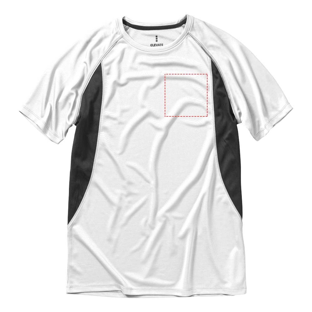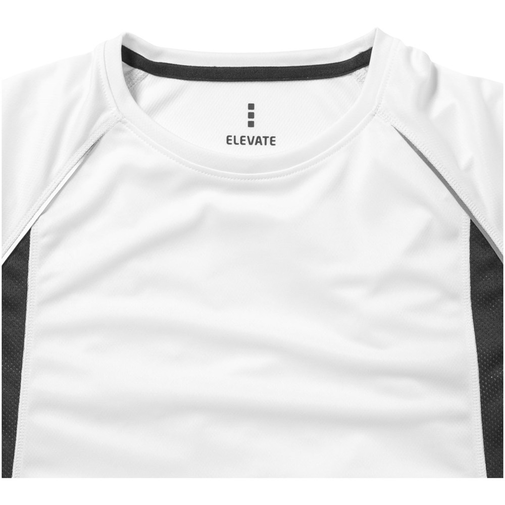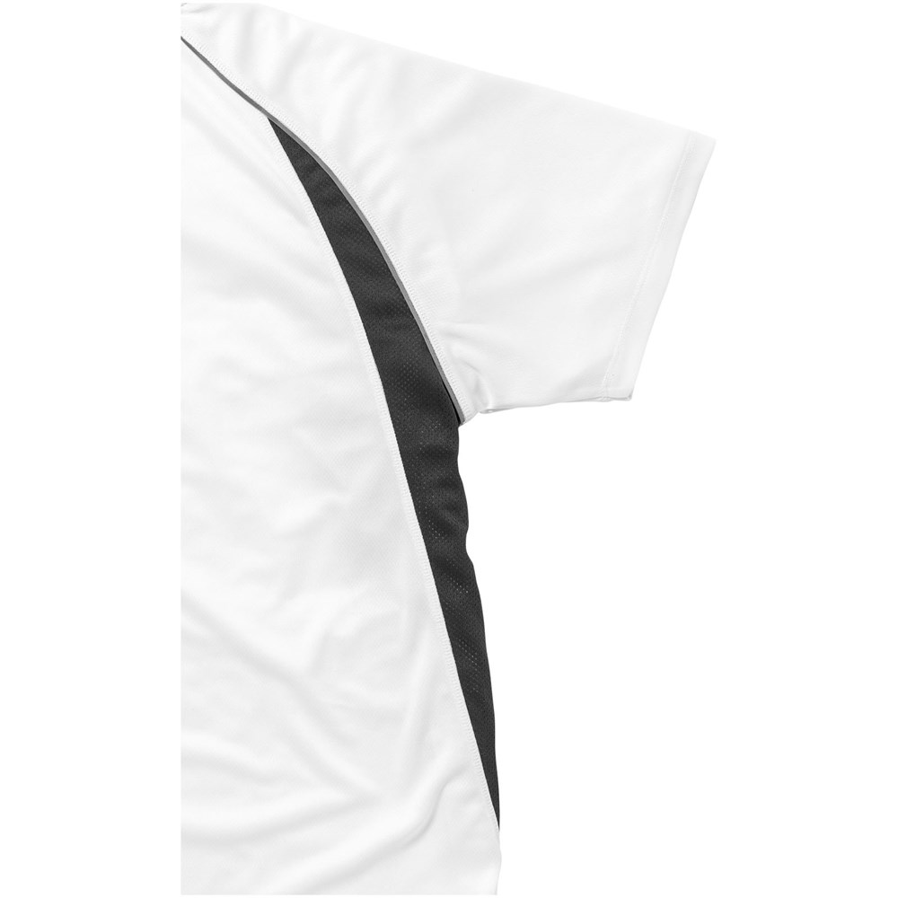 Boord in dezelfde stof. Ronde hals. Zijpanelen in mesh stof. Reflecterende details. Raglan mouwen. Transfer maatlabel voor extra comfort. Smallere details in flatlock steken. Satijnen nektape.