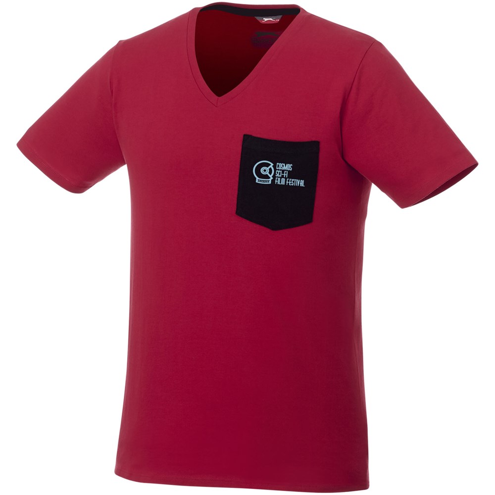 Naadloos cirkelvormig breisel. V-hals. Borstzak. Schouder tot schouder tape. Dubbele stiksels. Ophanglus in contrastkleur. Transfer maatlabel voor extra comfort.