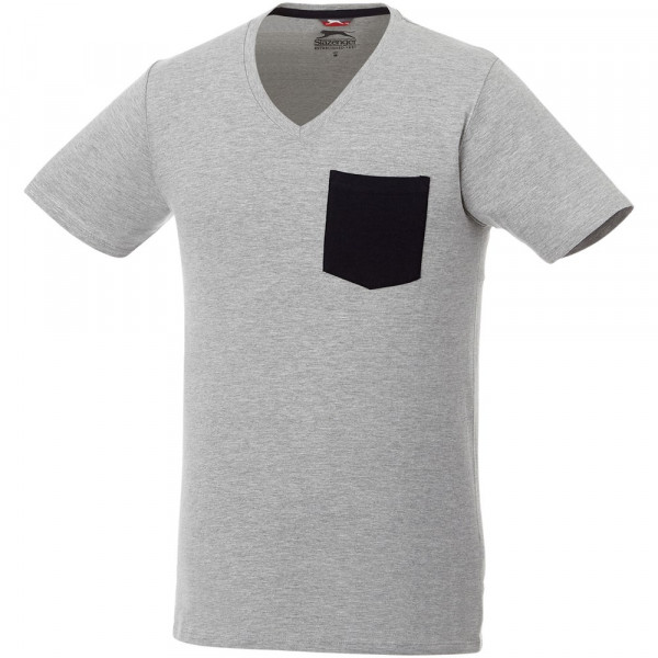 Naadloos cirkelvormig breisel. V-hals. Borstzak. Schouder tot schouder tape. Dubbele stiksels. Ophanglus in contrastkleur. Transfer maatlabel voor extra comfort.