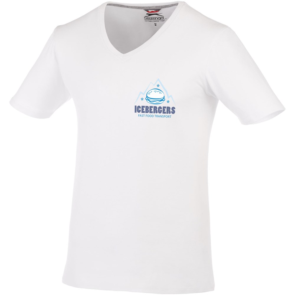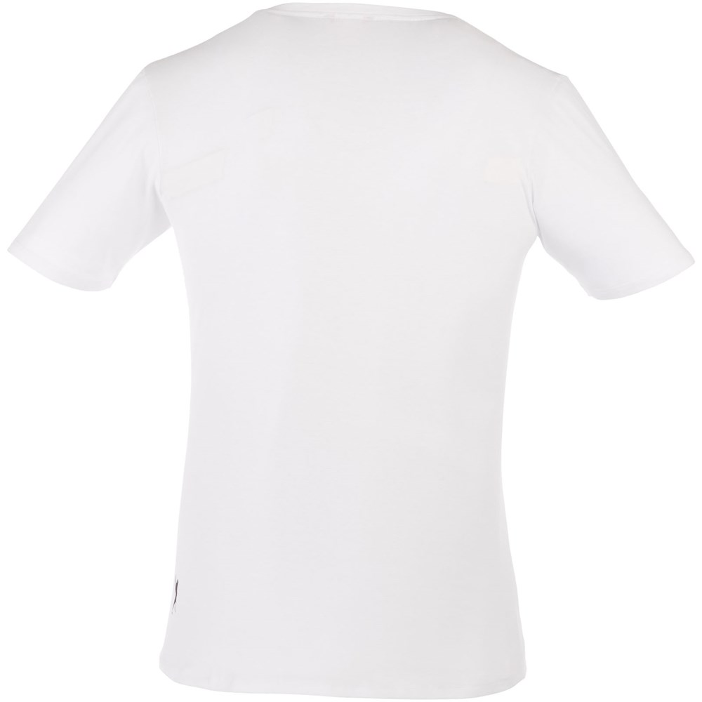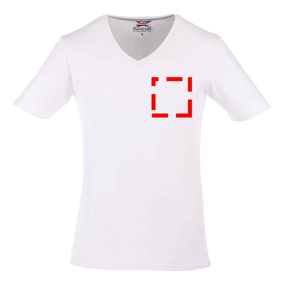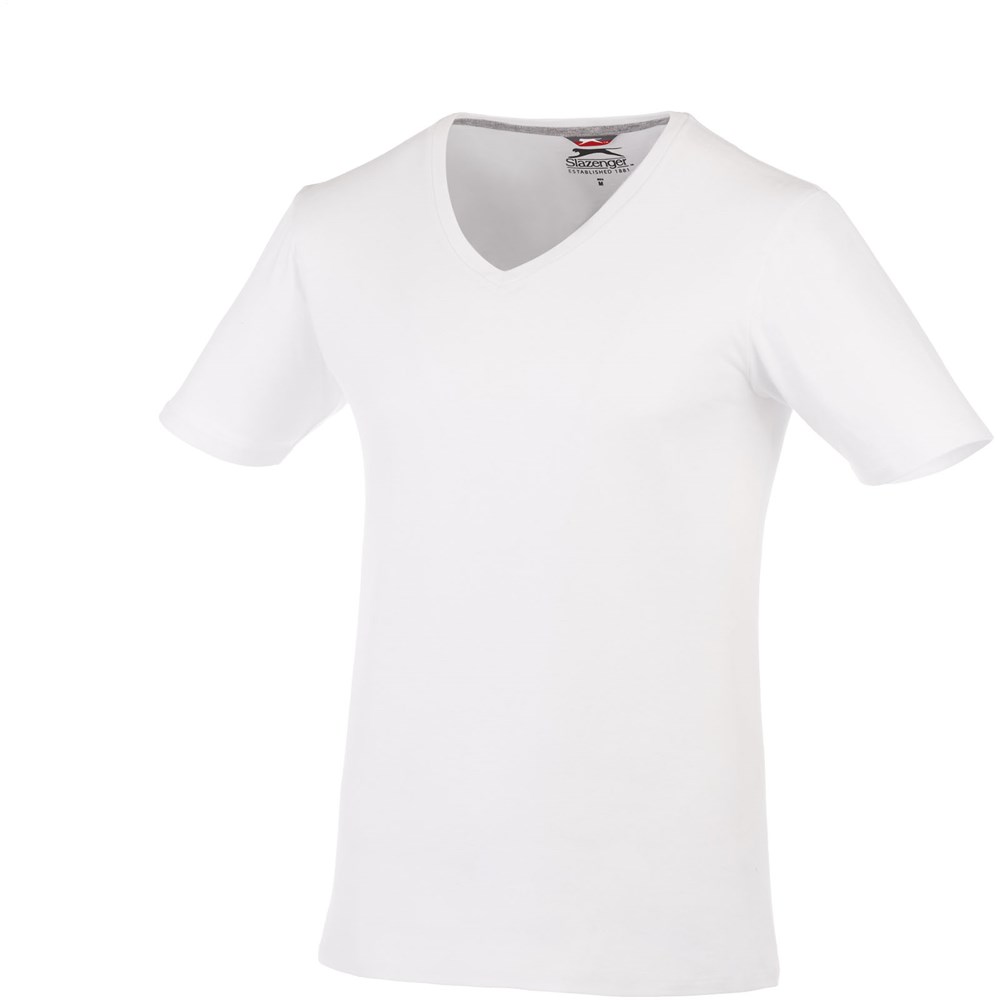 Naadloos cirkelvormig breisel. V-hals. Schouder tot schouder tape. Dubbele stiksels. Ophanglus in contrastkleur. Transfer maatlabel voor extra comfort.