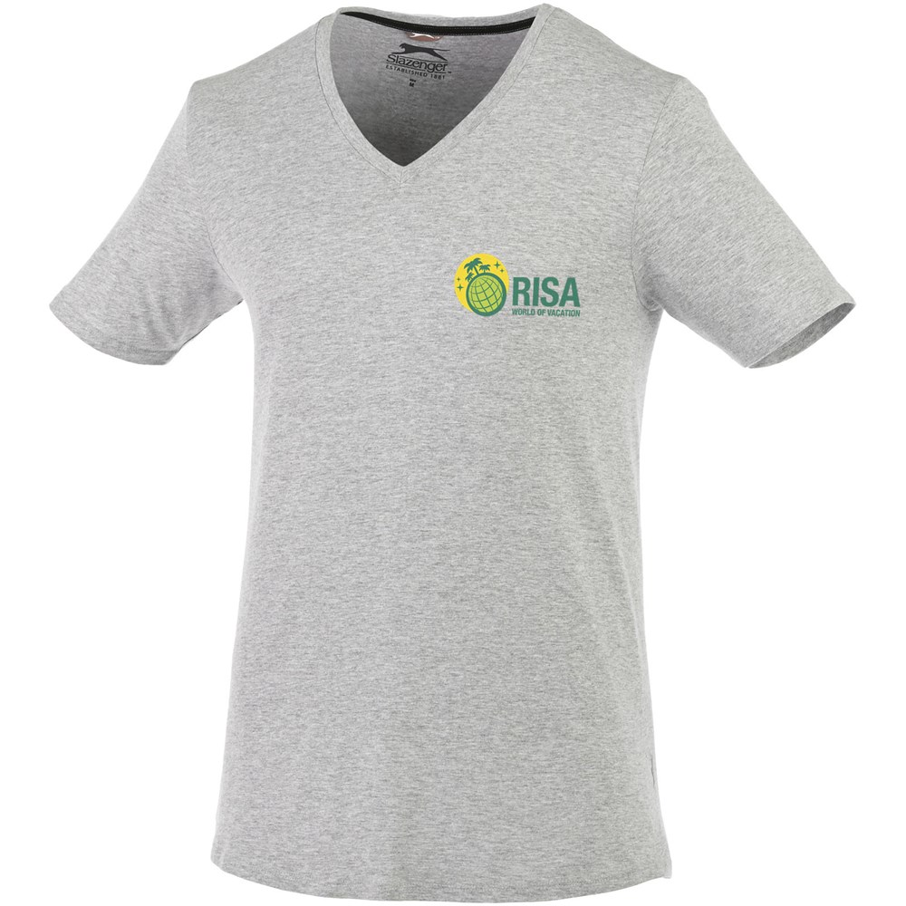 Naadloos cirkelvormig breisel. V-hals. Schouder tot schouder tape. Dubbele stiksels. Ophanglus in contrastkleur. Transfer maatlabel voor extra comfort.