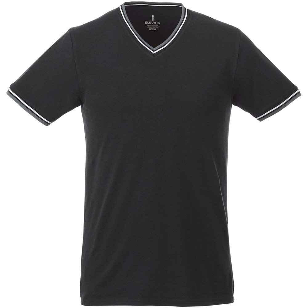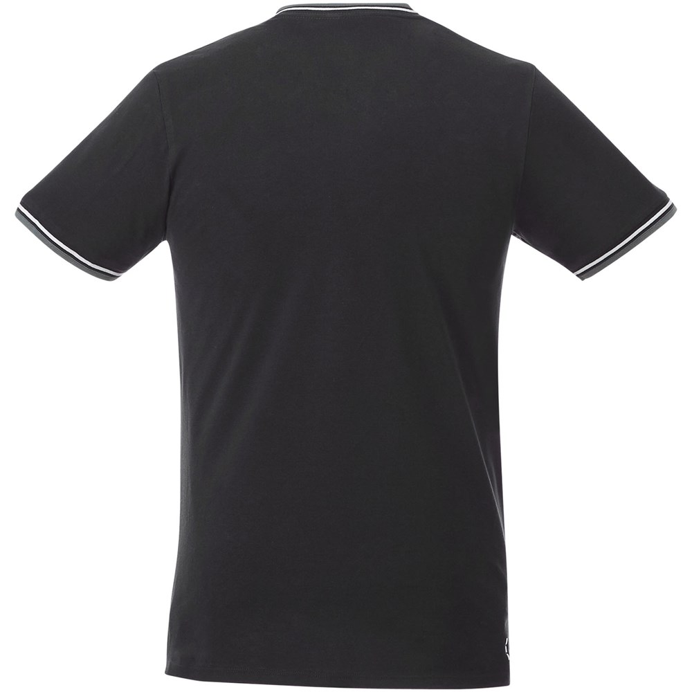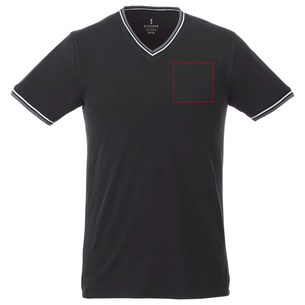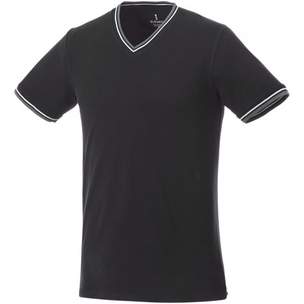 Vlakgebreide kraag. Plat gebreide rib mouw. Contrast gekleurde tipping op de kraag en mouwen. V-hals. Dubbele stiksels. Transfer maatlabel voor extra comfort.