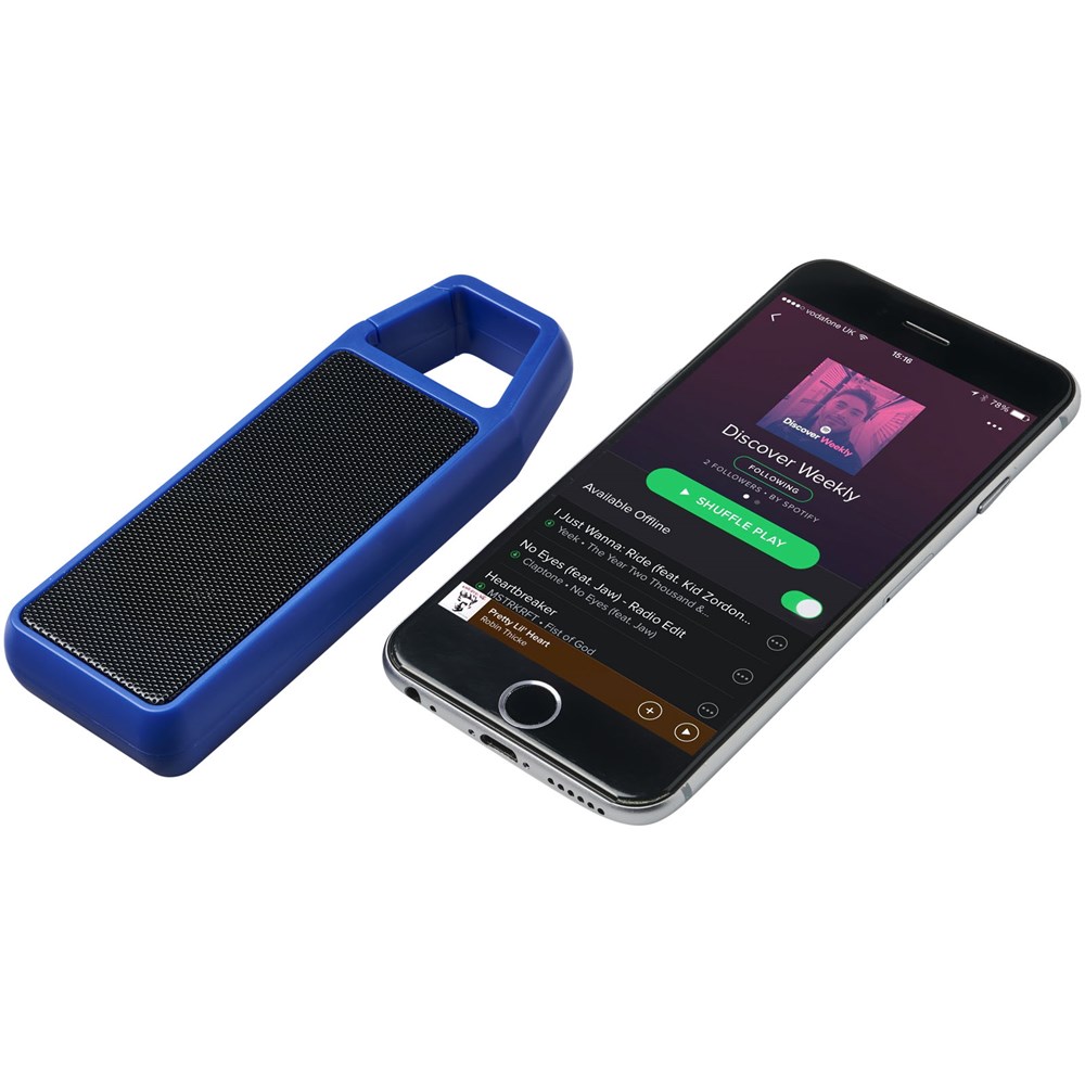 Kwaliteitsgeluid in een kleine vorm die muziek of andere audio van een Bluetooth® apparaat afspeelt. De ingebouwde clip maakt dit product ideaal geschikt voor de persoon die altijd onderweg is. Bereik van Bluetooth® is 10 meter (33ft). Geniet tot 1,5 uur lang van muziek op maximaal volume met slechts eenmaal opladen. De oplaadtijd is ongeveer 1,5 uur. Inclusief een Micro USB-laadkabel en een ingebouwde microfoon.
