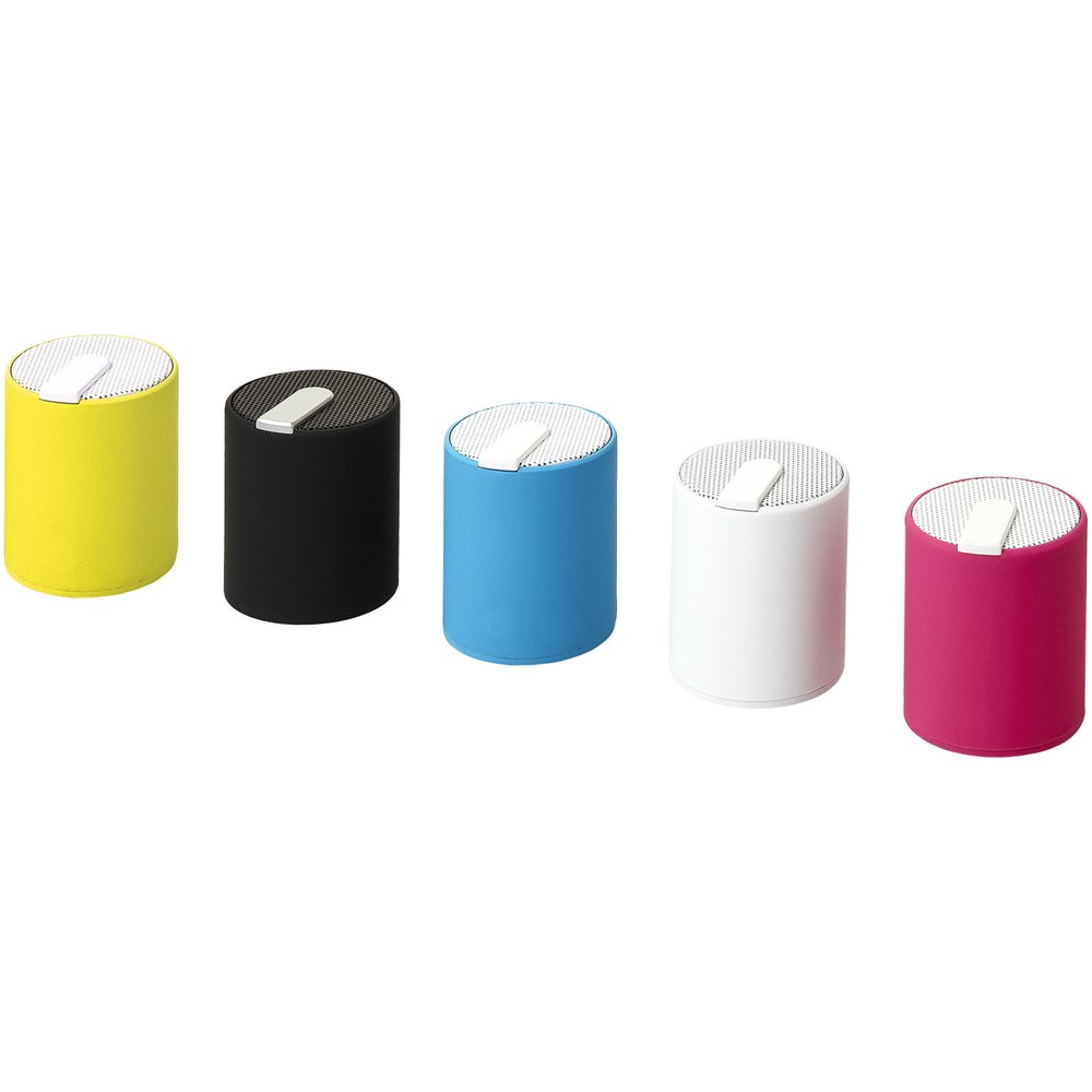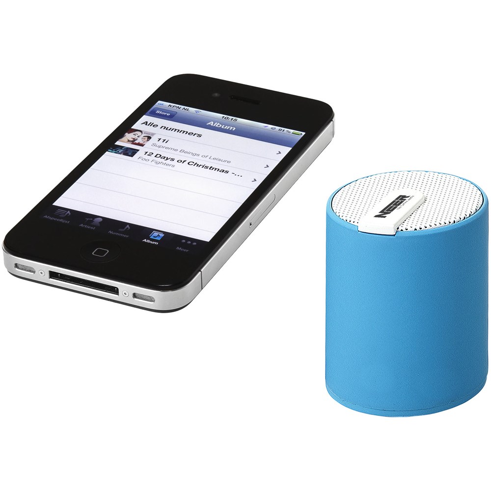 Mini-speaker met draadloze Bluetooth® verbinding, 10 meter bereik. Soft-touch behuizing voor een luxe gevoel van kwaliteit. Met USB-kabel en 3,5 mm lijn-in kabel. Geleverd in Avenue geschenkverpakking.