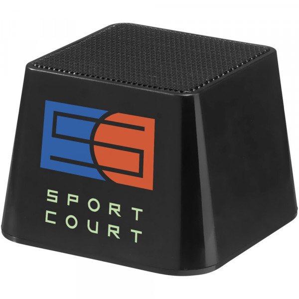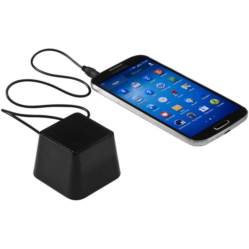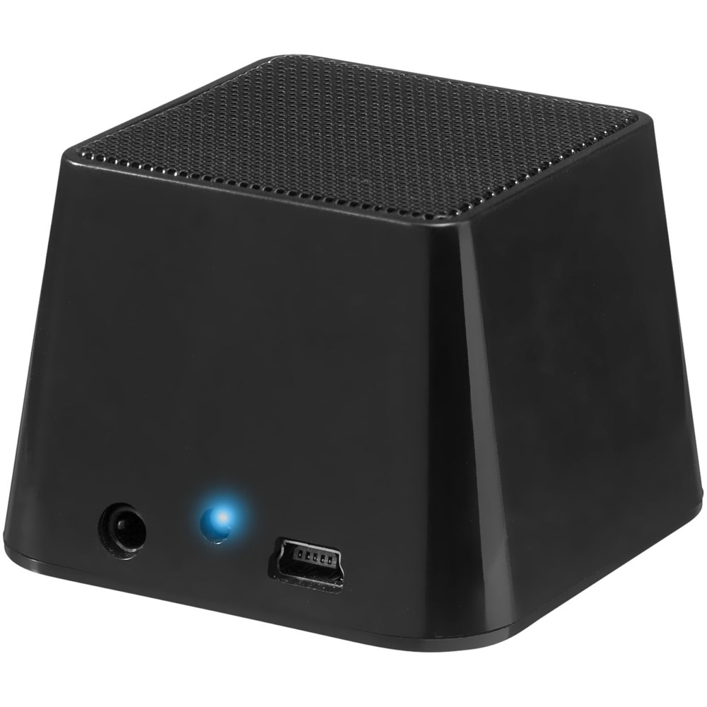 Draagbare Bluetooth® speaker met interne oplaadbare batterij, goed voor 4 uur non-stop muziek. speaker kan worden aangesloten via Bluetooth® of met de 3,5 mm audiokabel. Audio- en oplaadkabel meegeleverd. Geleverd in een witte kartonnen geschenkverpakking.