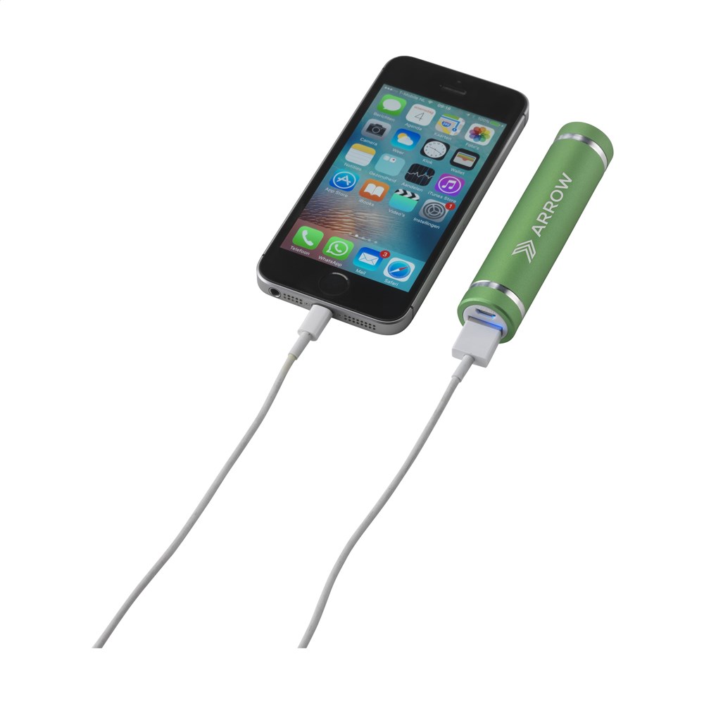 Aluminium powerbank met ingebouwde lithium batterij (2000mAh). De powerbank kan via USB, met bijgeleverde USB-kabel, worden opgeladen en is geschikt voor het opladen van de meest gangbare mobiele apparaten (o.a. smartphones en muziekdragers). Incl. gebruiksaanwijzing. Wanneer je het vermogen van de powerbank (mAh) deelt door het vermogen van de batterij in je mobiele apparaat (mAh), weet je ongeveer voor hoeveel procent of hoe vaak je jouw mobiele apparaat kunt opladen. Per stuk in doos.