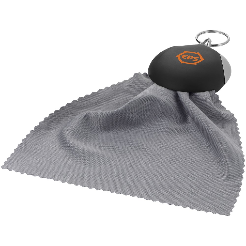 Sleutelhanger met schoonmaakdoekje voor bril en touch screen.