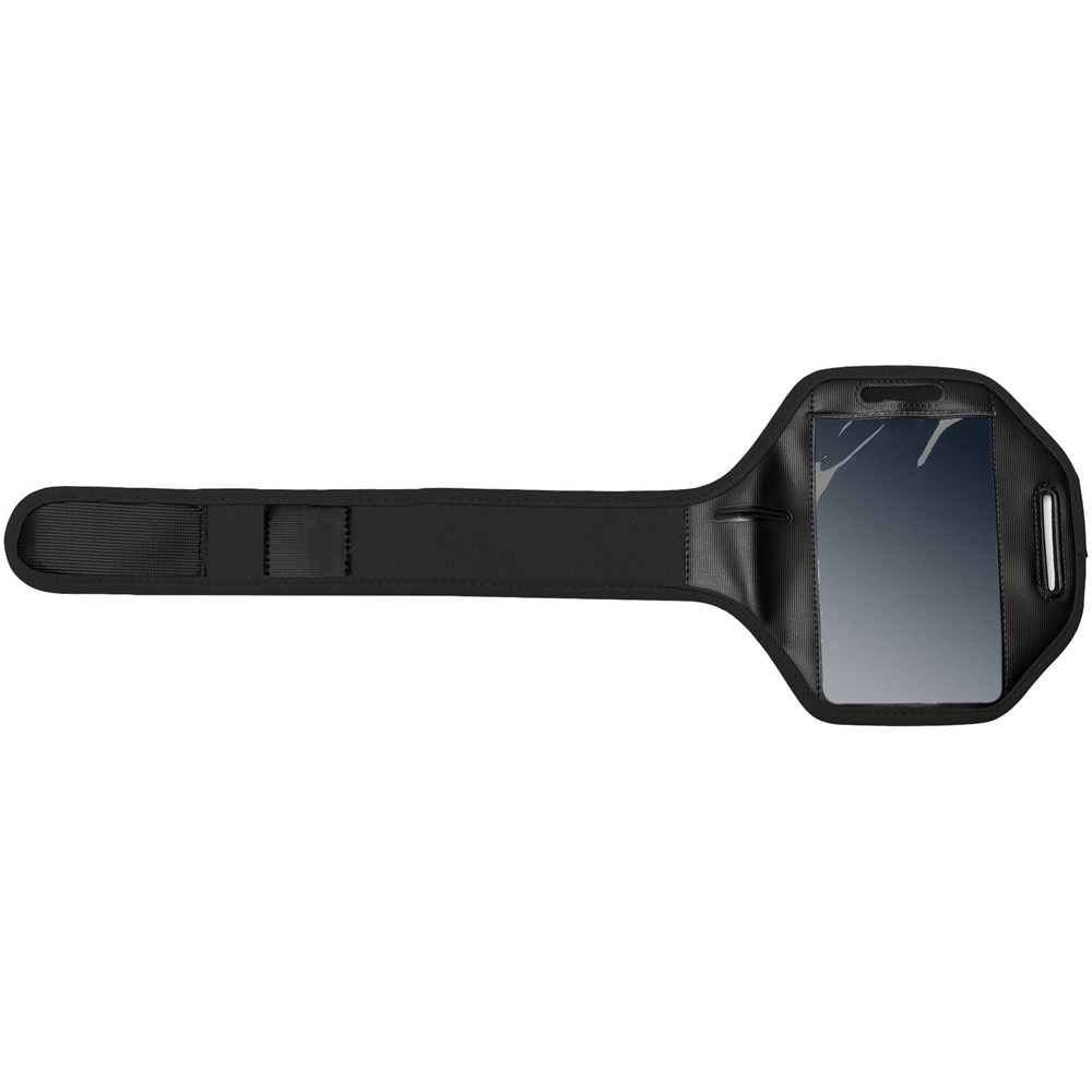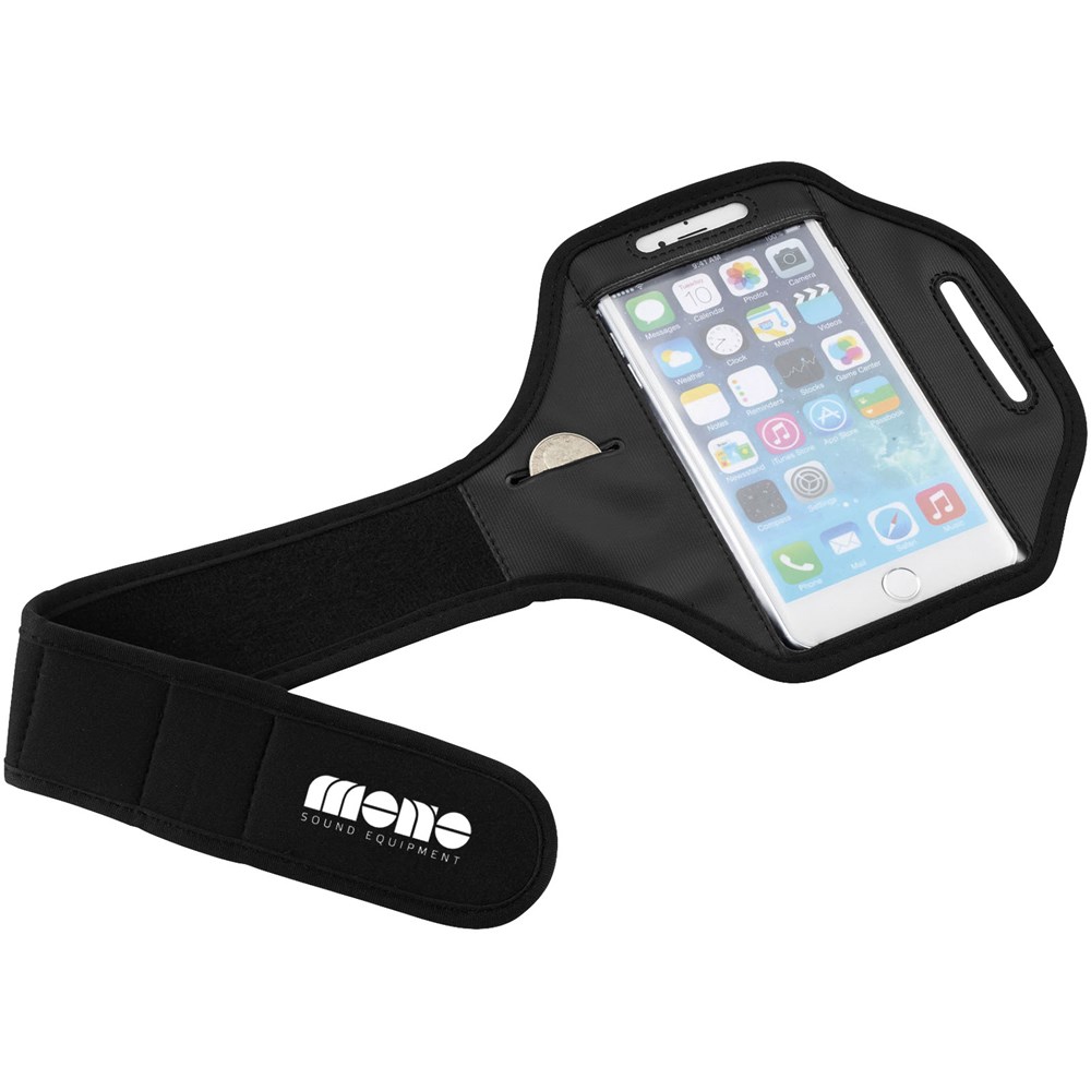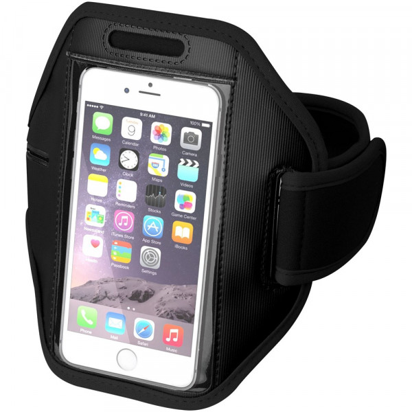 Verstelbare armband met klittenbandsluiting en PVC flap die de smartphone beschermt. Ook geschikt voor grotere smartphones als de iPhone 6(S)-Plus en Samsung S6. Met extra vakje voor sleutels of kleingeld.