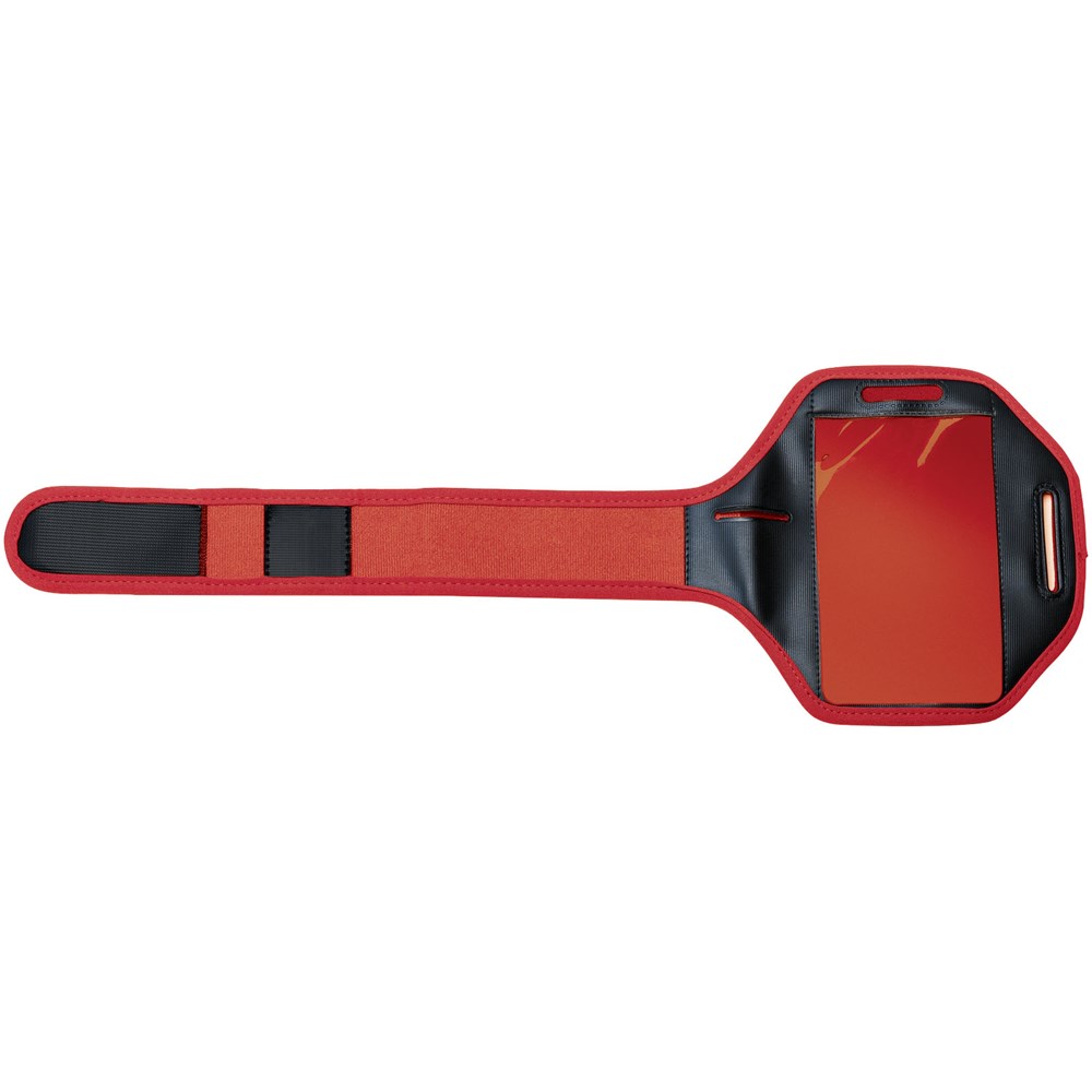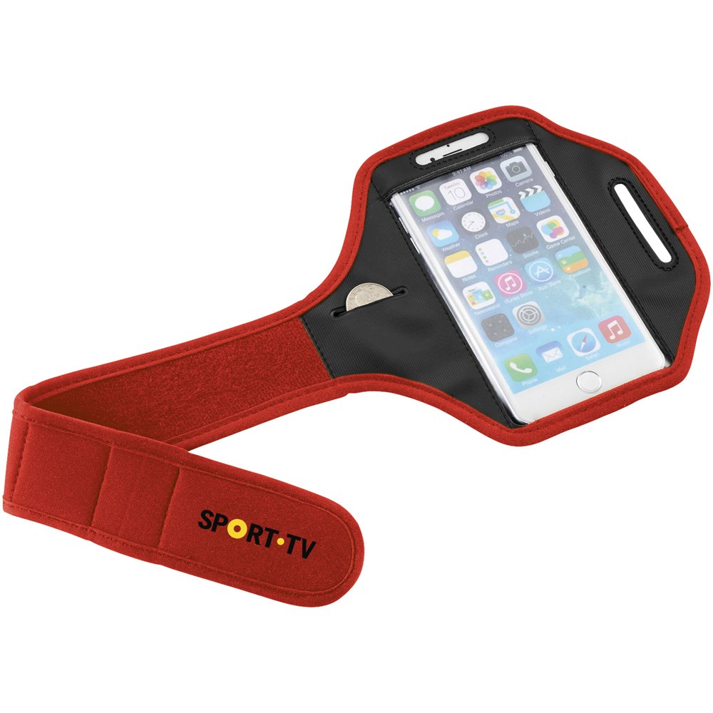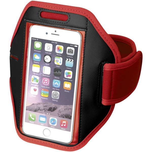 Verstelbare armband met klittenbandsluiting en PVC flap die de smartphone beschermt. Ook geschikt voor grotere smartphones als de iPhone 6(S)-Plus en Samsung S6. Met extra vakje voor sleutels of kleingeld.