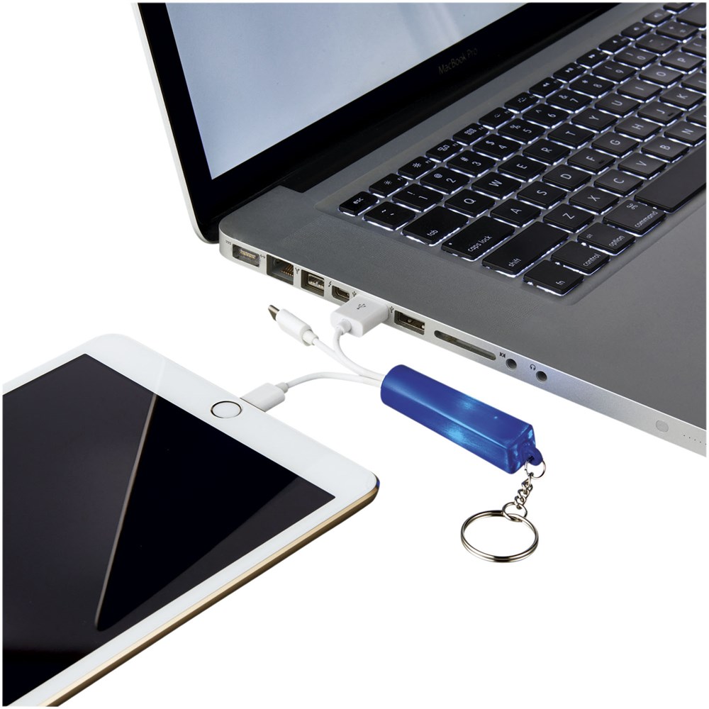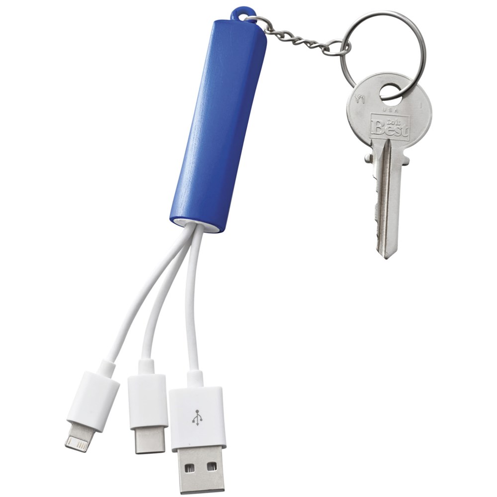 De Route 3-in-1 oplaadkabel heeft 1 type C, 1 USB type A en een 2-in-1 dubbel uiteinde dat compatibel is voor zowel Apple iOS als Android apparaten. De kabel licht op tijdens het laden en wordt geleverd met sleutelhanger. Voor het opladen van Apple apparaten sluit u de kabel met het uiteinde zonder pinnen aan op het apparaat, voor het opladen van Android apparaten sluit u de kabel met het uiteinde met pinnen aan op het apparaat. Dit item moet worden lasergegraveerd om de oplichtende functie te onthullen.