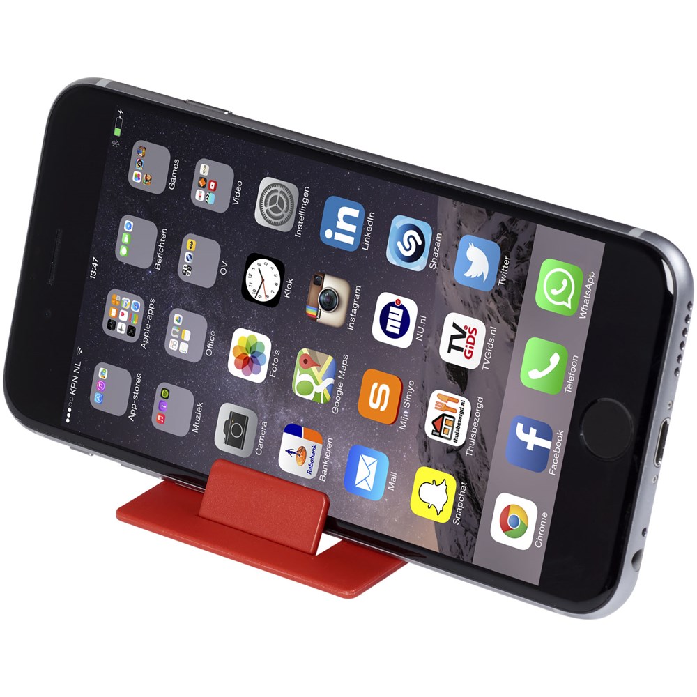 De Hold opvouwbare telefoonstandaard is een zeer kleine multimediahouder. Doordat hij de vorm van een creditcard heeft past hij in de meeste portemonnees. Hij is stabiel en stevig, en opent altijd in de juiste hoek voor een perfect zicht op het scherm van je smartphone. Bijna het gehele oppervlak is bedrukbaar, waardoor hij perfect is voor decoraties. Geproduceerd in de EU.