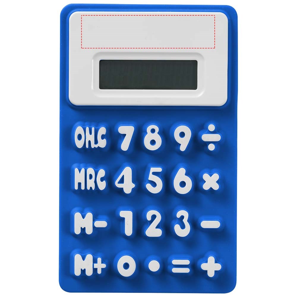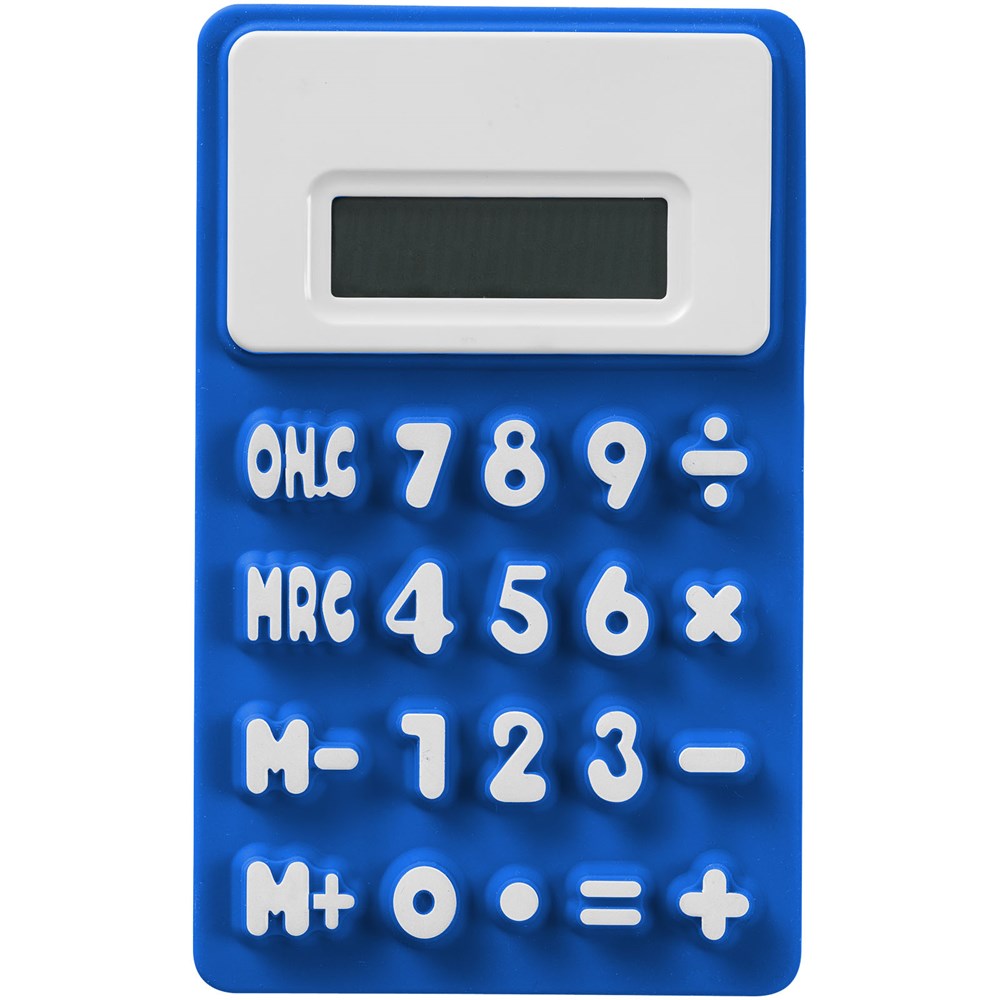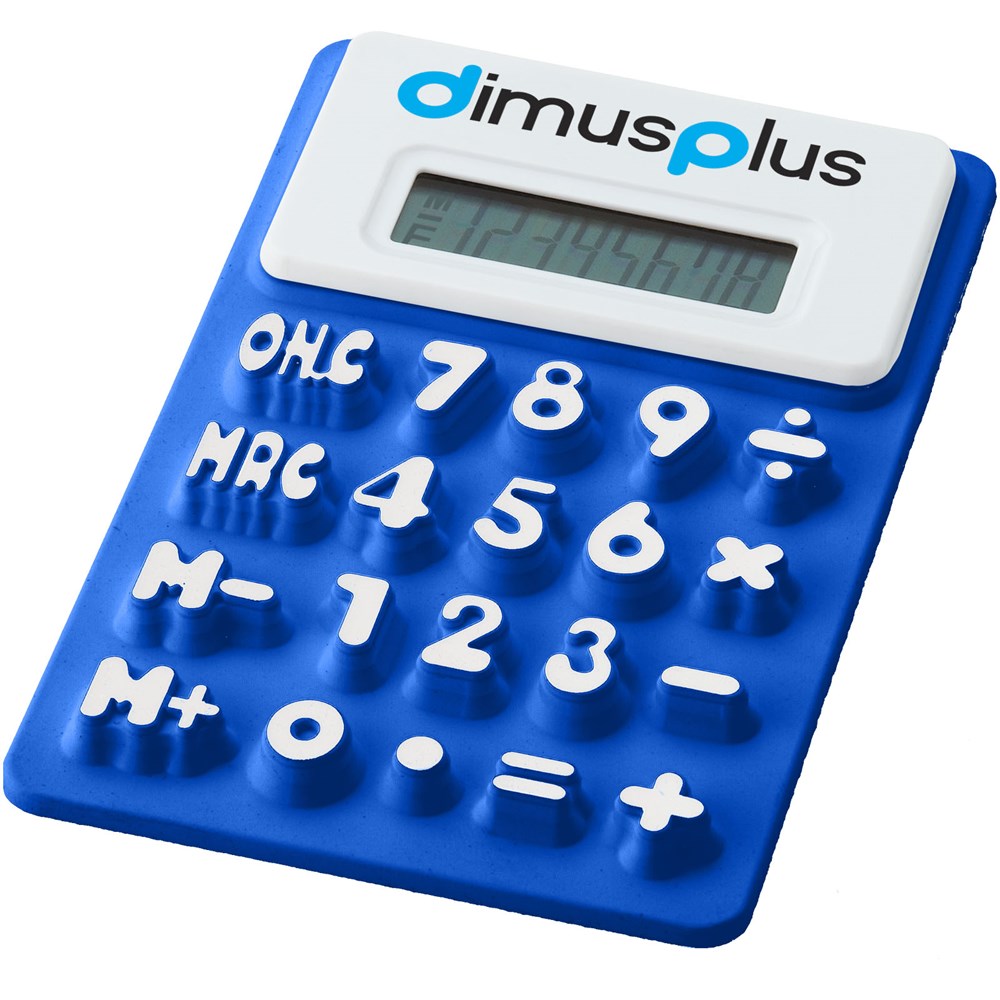 Flexibele, 8-cijferige rekenmachine met witte rand, opstaande cijfers en geheugenfunctie. Inclusief batterij.