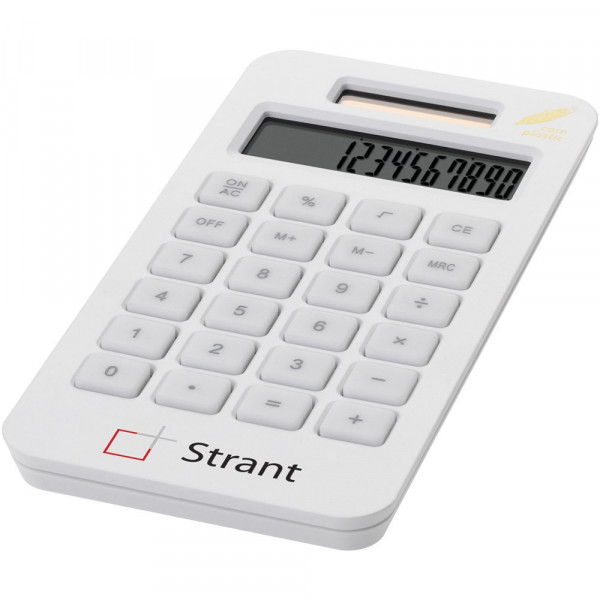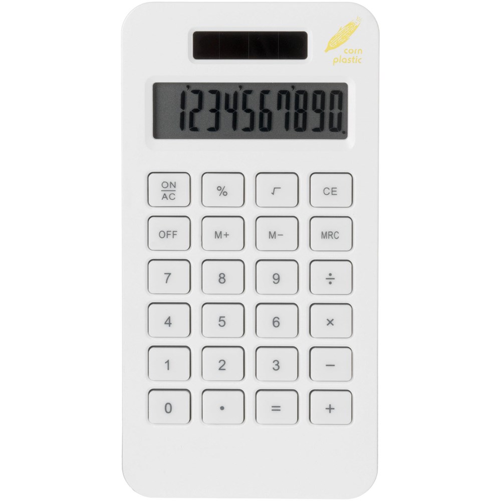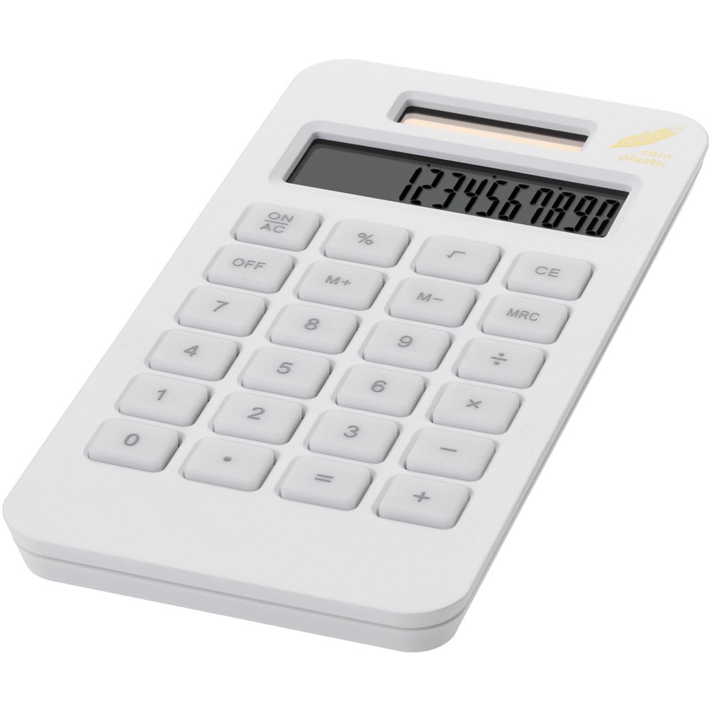 Summa zakrekenmachine. Kleurrijke en milieuvriendelijke 10-cijferige rekenmachine. Gemaakt van mais, werkt op zonne-energie. Mais-kunststof.