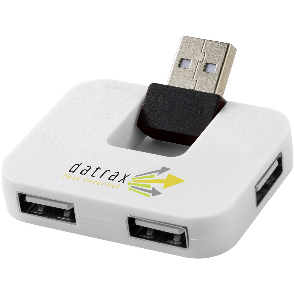 Rechthoekige 4-poorts USB hub met flexibele input-poort.