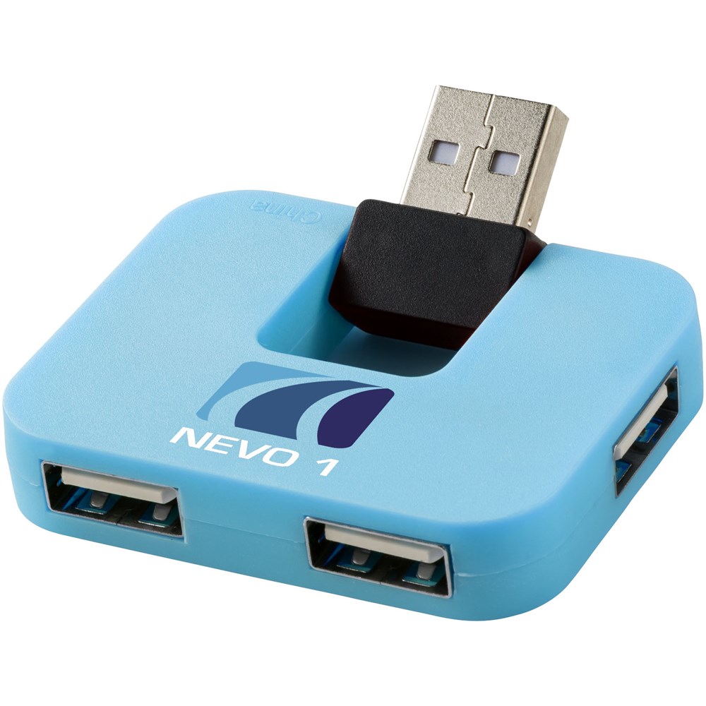 Rechthoekige 4-poorts USB hub met flexibele input-poort.