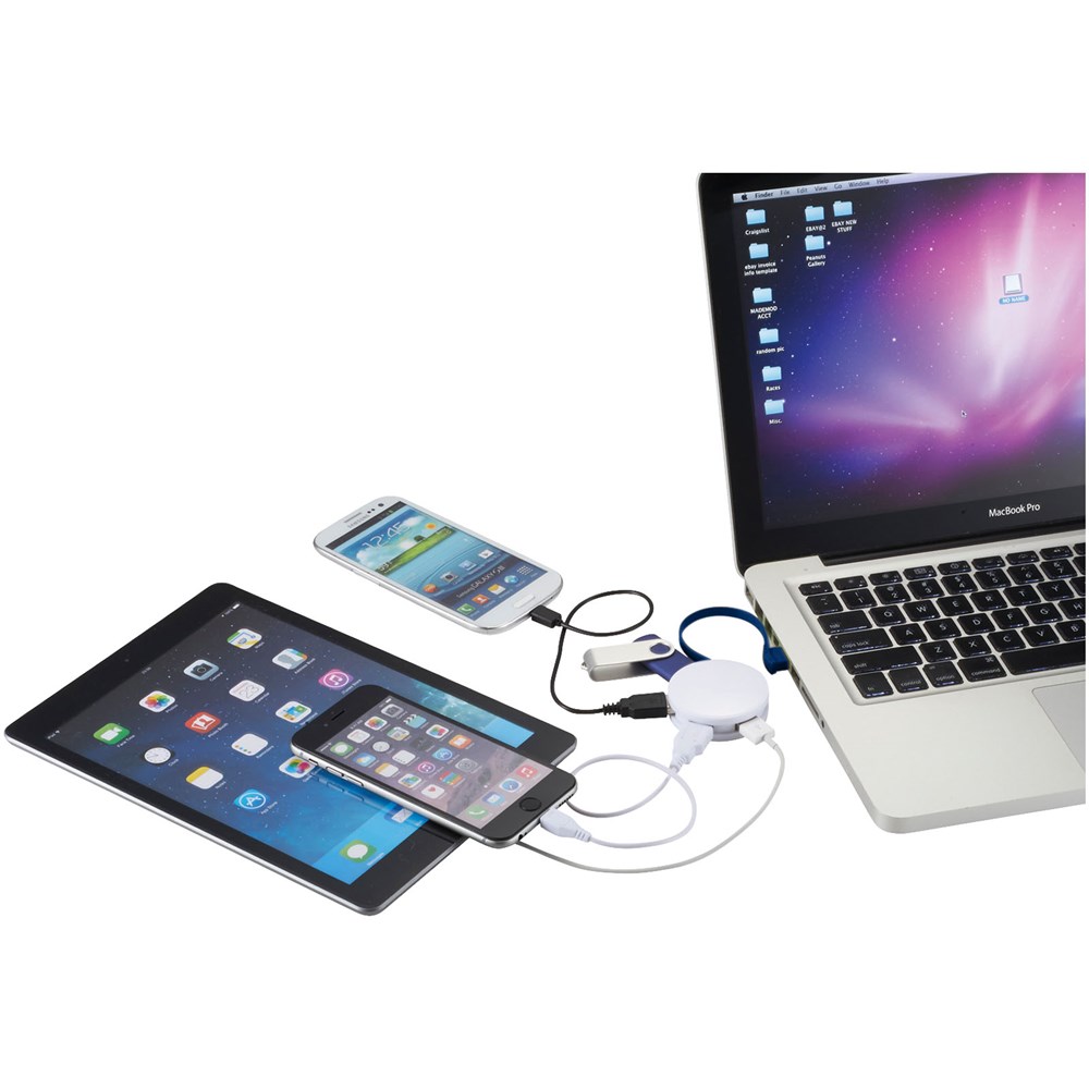 Ronde USB hub met 4 poorten en een input-poort aan de binnenkant. mehr
