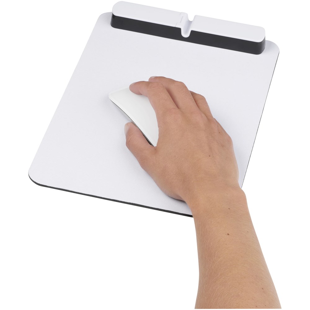 De Cache-muismat met USB-hub bestaat uit een zachte muismat en USB 2.0-hub met drie uitgangen. De micro USB-kabel kan worden opgeborgen in het linker compartiment waarin ook accessoires zoals paperclips kunnen worden bewaard wanneer de kabel uit het compartiment wordt gehaald om te worden aangesloten.