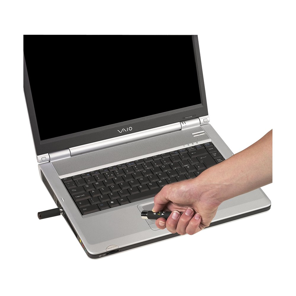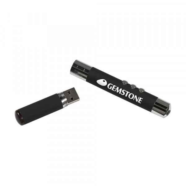Laserpointer met slideshow/dia functie. Met infrarood afstandsbediening voor het op afstand regelen van een powerpointpresentatie. Bruikbaar onder Windows, Mac en Linux. Incl. celbatterijen en gebruiksaanwijzing. In geschenkblik.