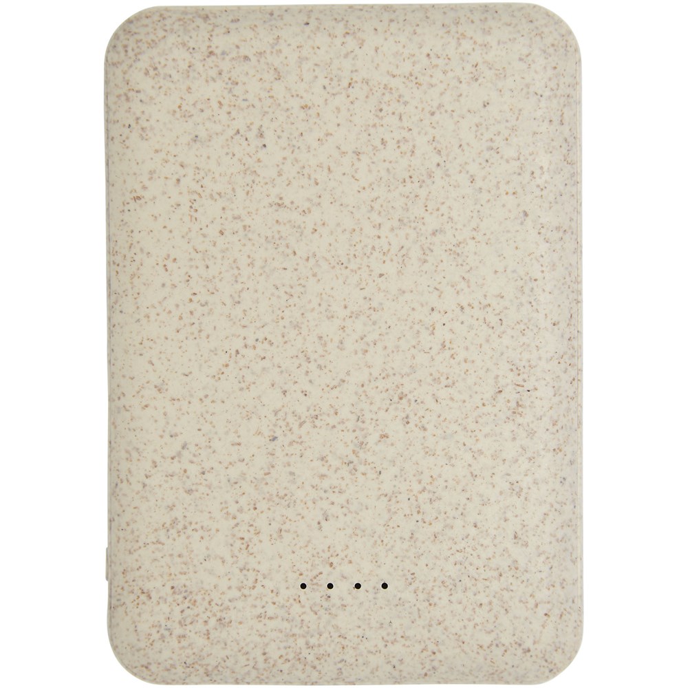 5000 mAh lichtgewicht en compacte powerbank gemaakt van tarwestro en plastic materiaal samen gemengd, waardoor er minder plastic nodig is. Dubbele USB-uitgang die het mogelijk maakt om 2 apparaten tegelijkertijd op te laden. Verpakt in een geschenkverpakking en geleverd met een gebruiksaanwijzing (beide gemaakt van duurzaam materiaal). Micro-USB-oplaadkabel inbegrepen.