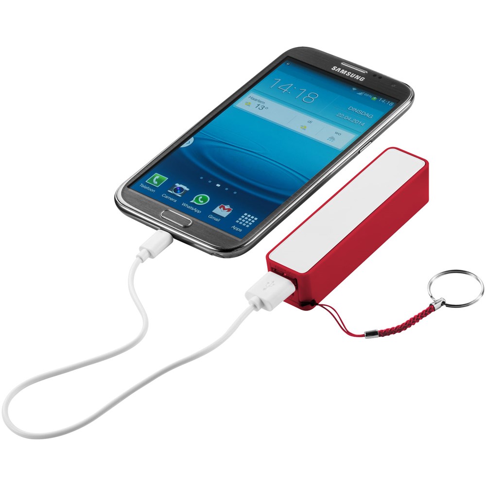 Deze powerbank heeft een capaciteit van 2000 mAh en LED-indicatie van laadstatus. Powerbank die zichzelf via de meegeleverde USB-kabel in ca. 2 uur oplaadt. Met metalen sleutelring en geleverd in een witte kartonnen geschenkverpakking.