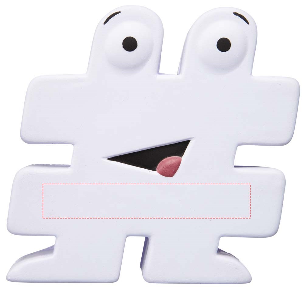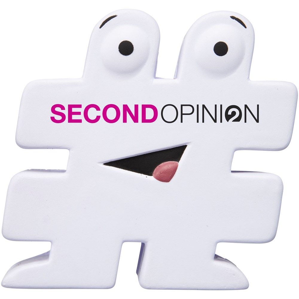 Hash tag stress reliever kan ook gebruikt worden om een koord bij elkaar te houden. Bij anti-stress artikelen kunnen kleine variaties voorkomen in dichtheid, kleur, afmetingen en gewicht die effect kunnen hebben op precisie en uniformiteit van de bedrukking, die ook kan breken. Geen half-tinten. PU foam.