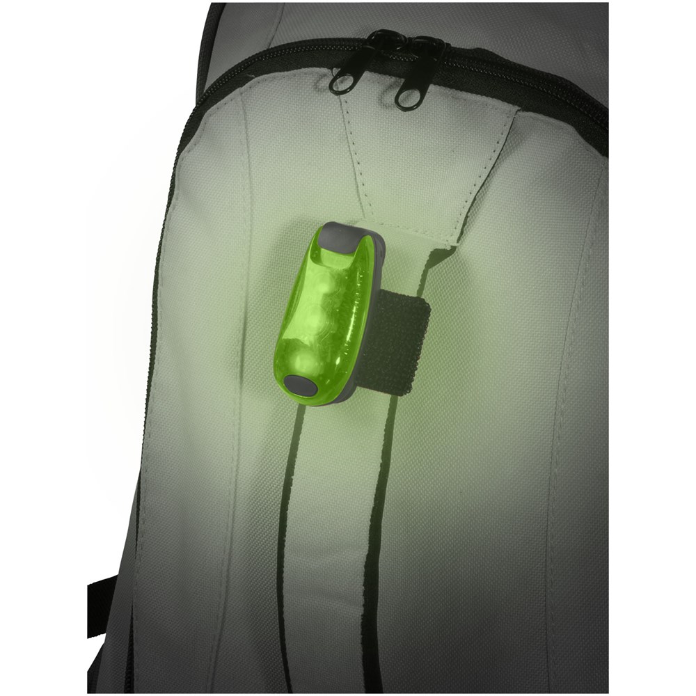 Reflecterend lichtje met aan/uit schakelaar zowel voor constant licht als knipperend licht. Klitteband inbegrepen voor eenvoudige montage op fiets of rugzak. Inclusief batterijen.