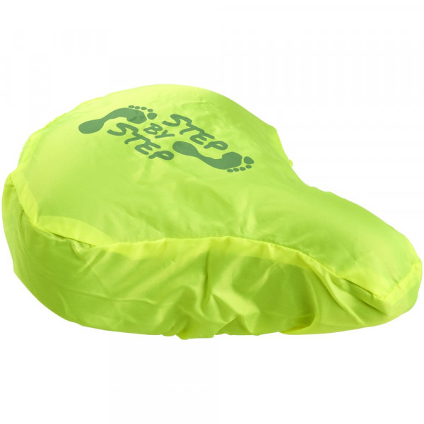 Fietszadelhoes gemaakt van 100% polyester waterdicht WP 600 limegroen fluorescerend materiaal. mehr