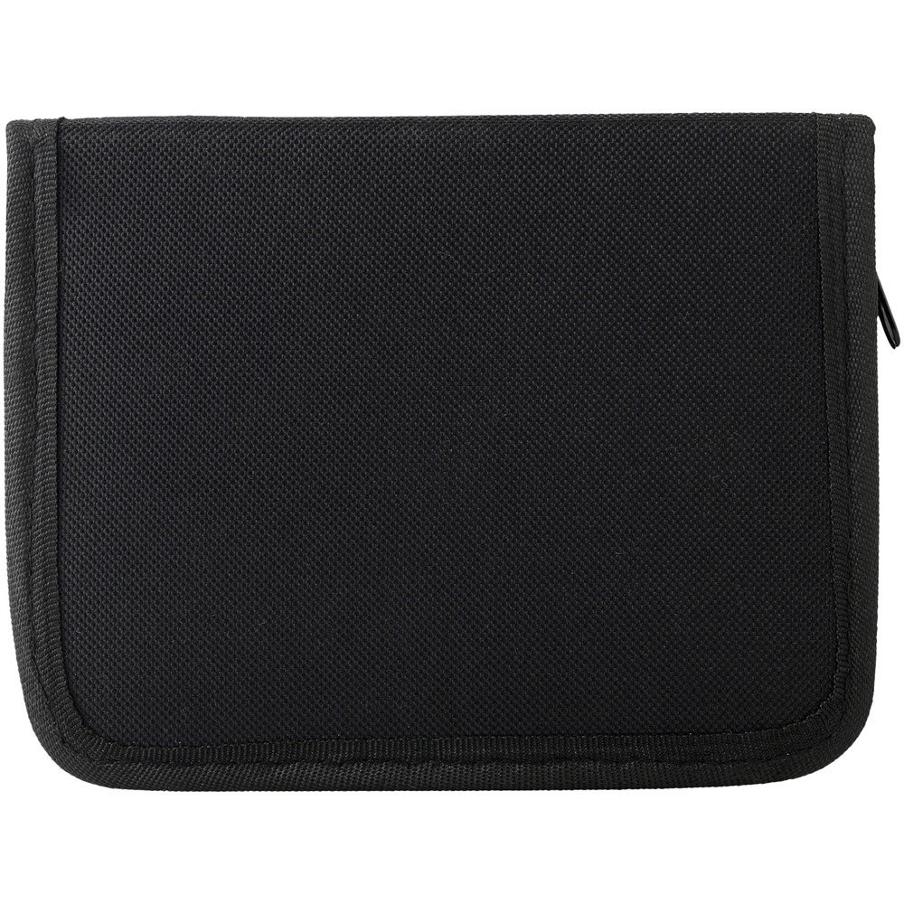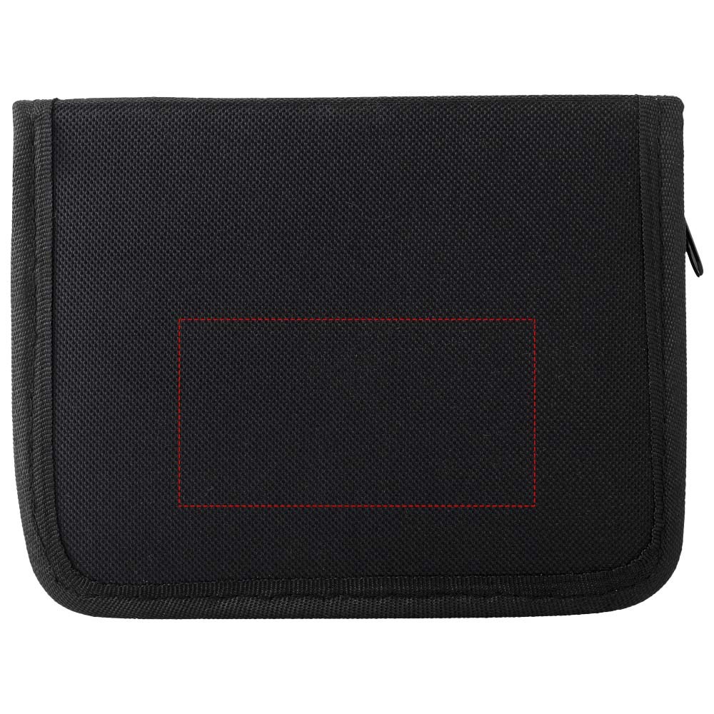 2 sets speelkaarten, 5 dobbelstenen, notitieboekje en een potlood. Geleverd in een reishoes.