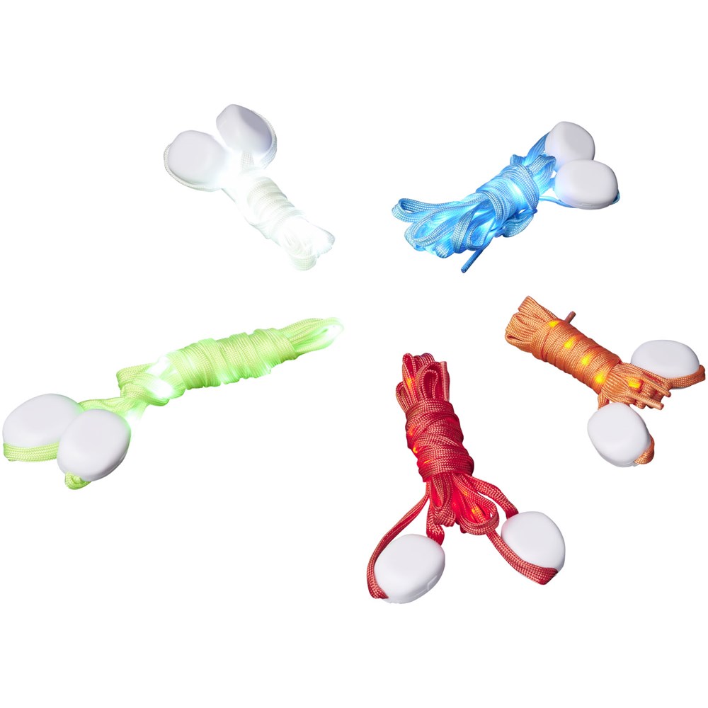 Schoenveters die plezier, veiligheid en functionaliteit samenbrengen. Geschikt voor alle schoensoorten, leeftijden en activiteiten. Elke veter is 120 cm lang en heeft 10 LED's. Met het paneel in het midden schakel je de lichten in en uit of laat je deze knipperen. Verkrijgbaar in een grote verscheidenheid aan kleuren, met een groot decoratievlak in het midden.