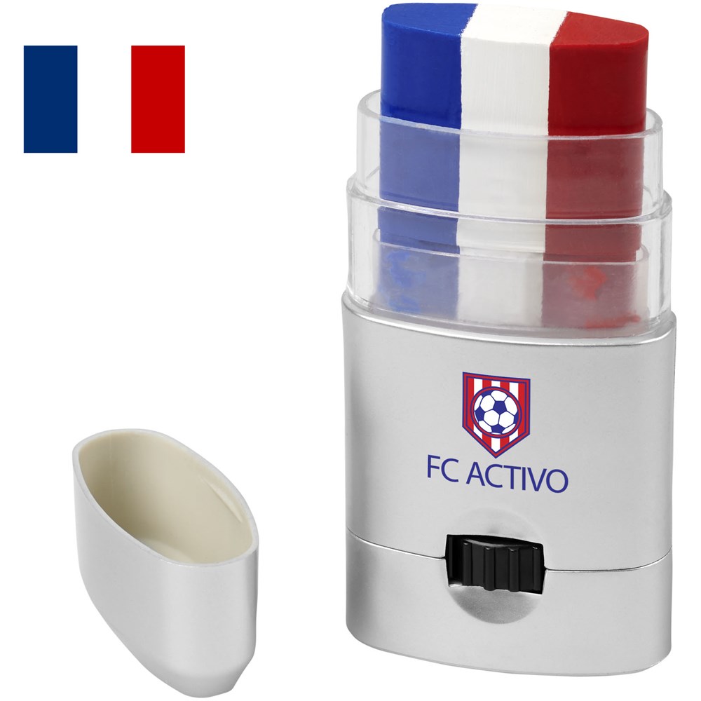 Gemakkelijk te reinigen bodypaint beschikbaar in een breed scala aan kleurencombinaties die de vlaggen van Frankrijk, Duitsland, Italië, Nederland, België, Portugal, Spanje, Oostenrijk, Denemarken, Zwitserland, Zweden en Polen vertegenwoordigen. Kan ook op het gezicht worden aangebracht en kan worden verwijderd met make-upreiniger of met water en zeep. Geproduceerd volgens GMP (Good Manufacturing Practices) nalevingsvereisten en voldoet aan de EU-regelgeving voor cosmetische producten (Verordening (EG) nr. 1223/2009). CPNP registratienummer 3260279.