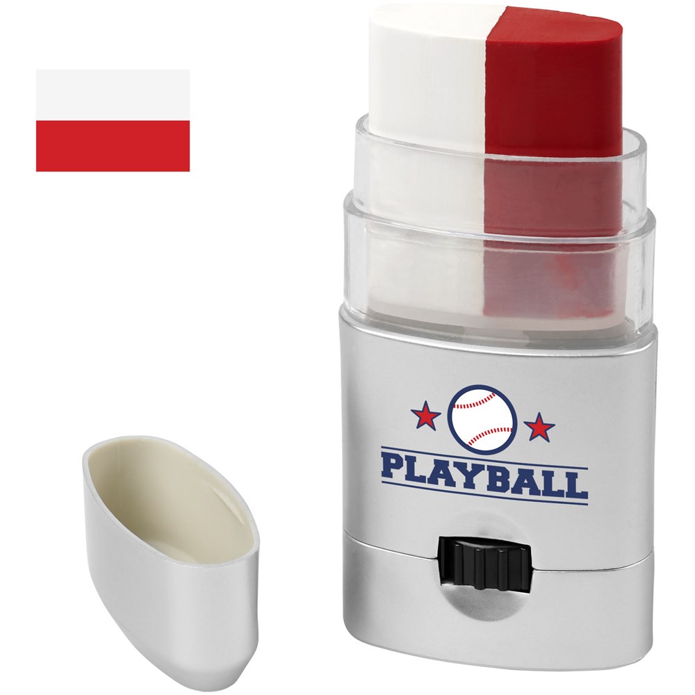 Gemakkelijk te reinigen bodypaint beschikbaar in een breed scala aan kleurencombinaties die de vlaggen van Frankrijk, Duitsland, Italië, Nederland, België, Portugal, Spanje, Oostenrijk, Denemarken, Zwitserland, Zweden en Polen vertegenwoordigen. Kan ook op het gezicht worden aangebracht en kan worden verwijderd met make-upreiniger of met water en zeep. Geproduceerd volgens GMP (Good Manufacturing Practices) nalevingsvereisten en voldoet aan de EU-regelgeving voor cosmetische producten (Verordening (EG) nr. 1223/2009). CPNP registratienummer 3260279.