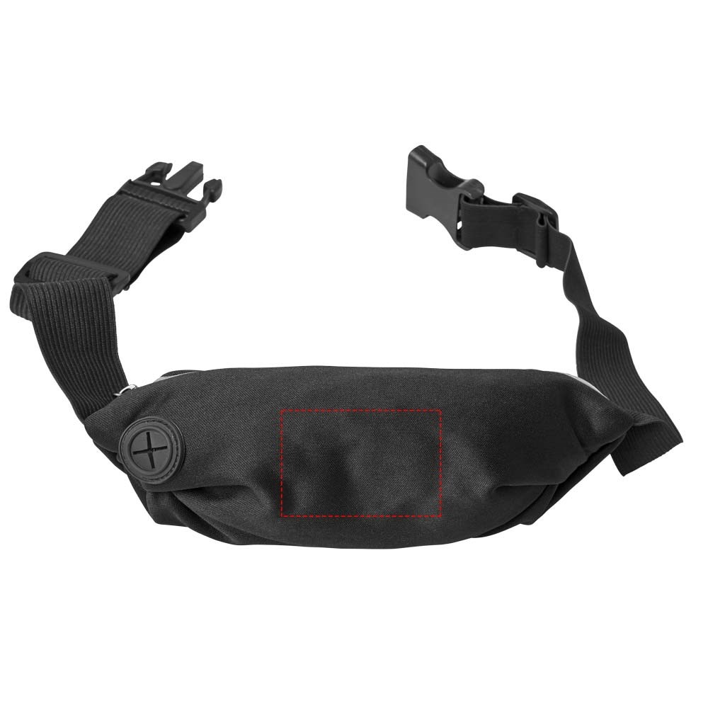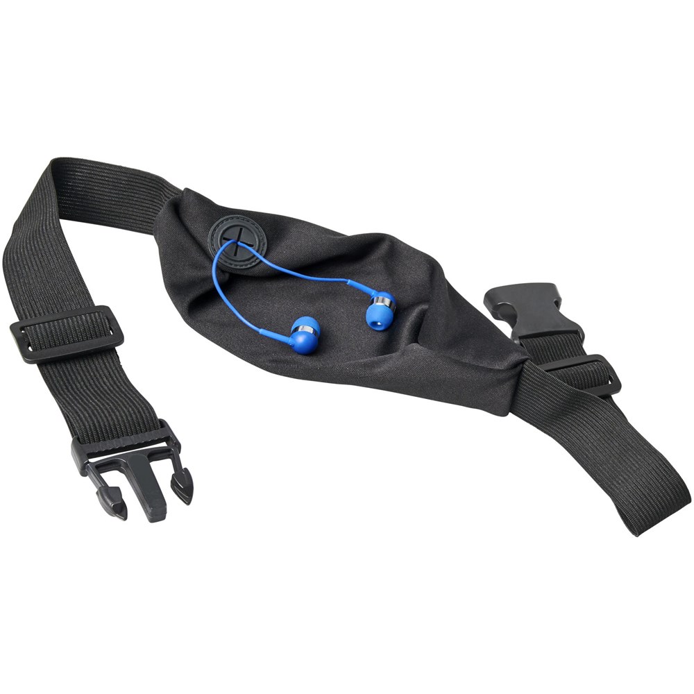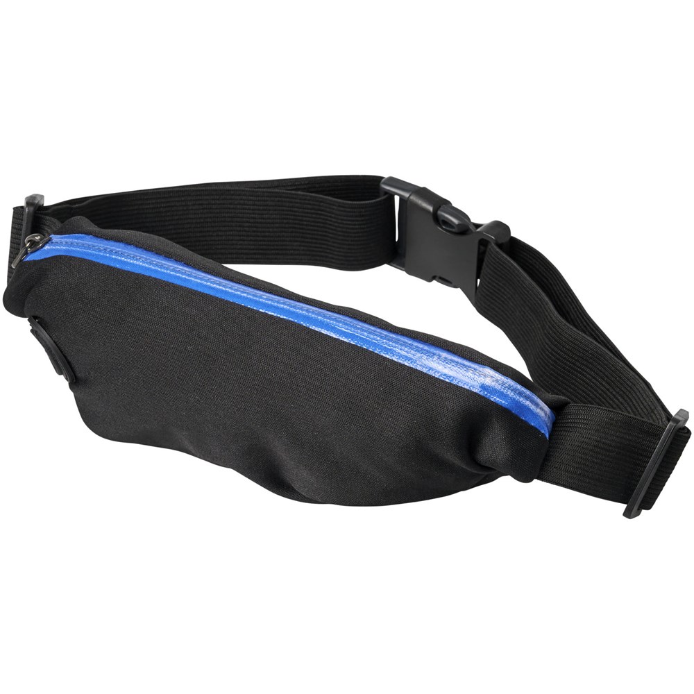 Flexibele sportheuptas met gekleurde rits en oordopjesuitgang. Het spandex materiaal en de elastische heupband met gespsluiting zorgen voor flexibiliteit tijdens het trainen of andere buitenactiviteiten. Groot decoratievlak aan de voorkant.